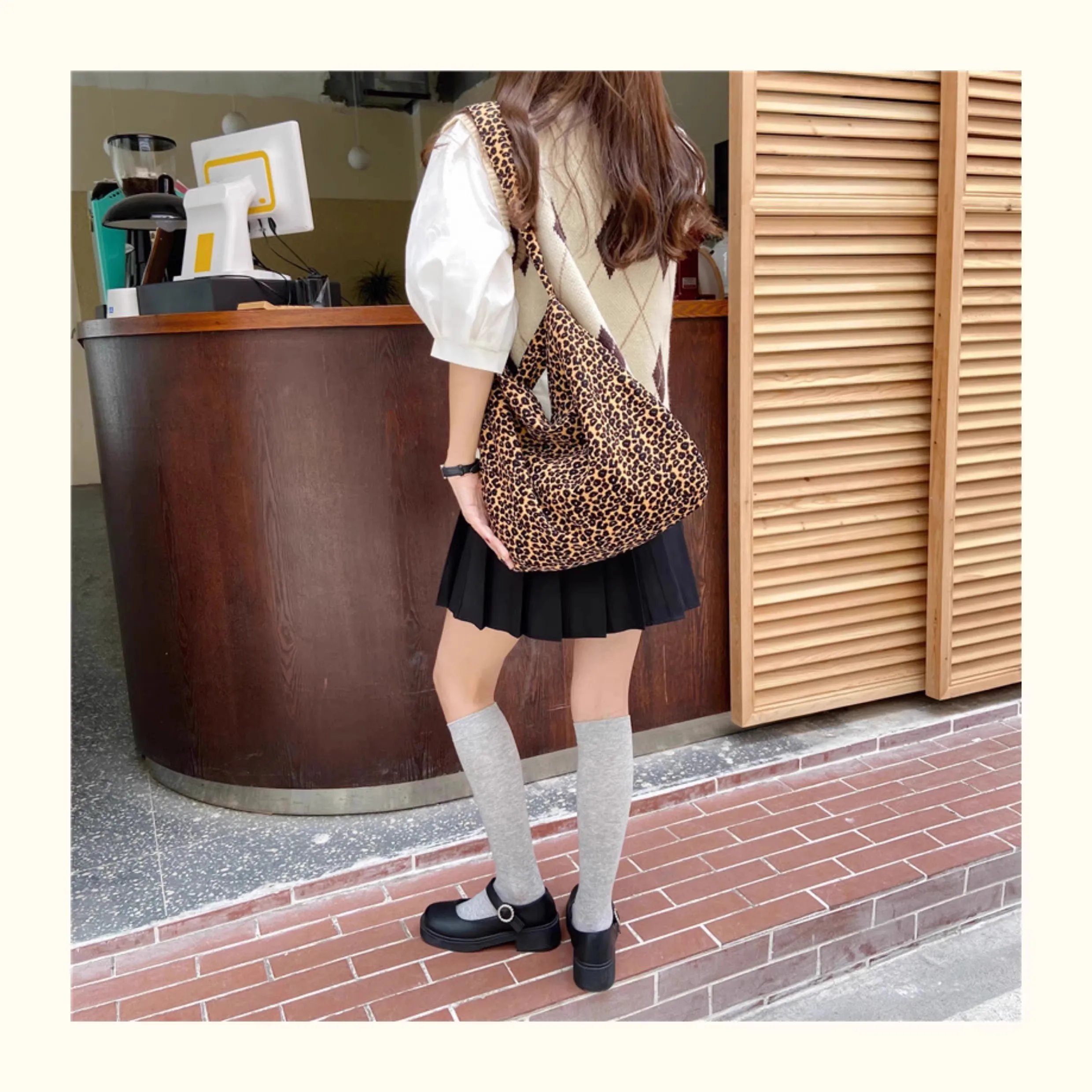 Featuring a chic leopard print, this bag combines fashion-forward style with a timeless appeal, perfect for the modern individual.