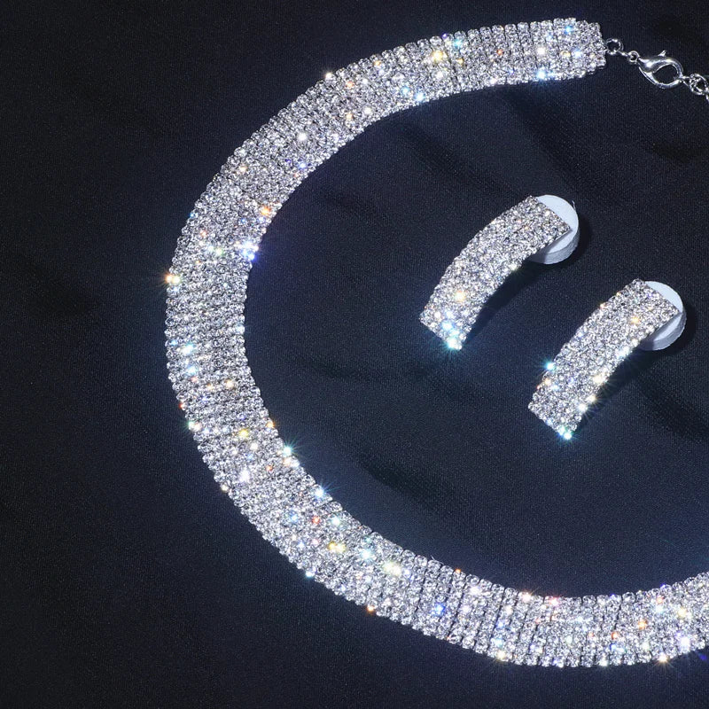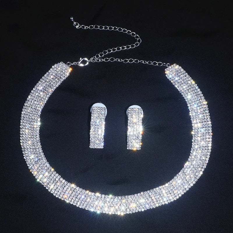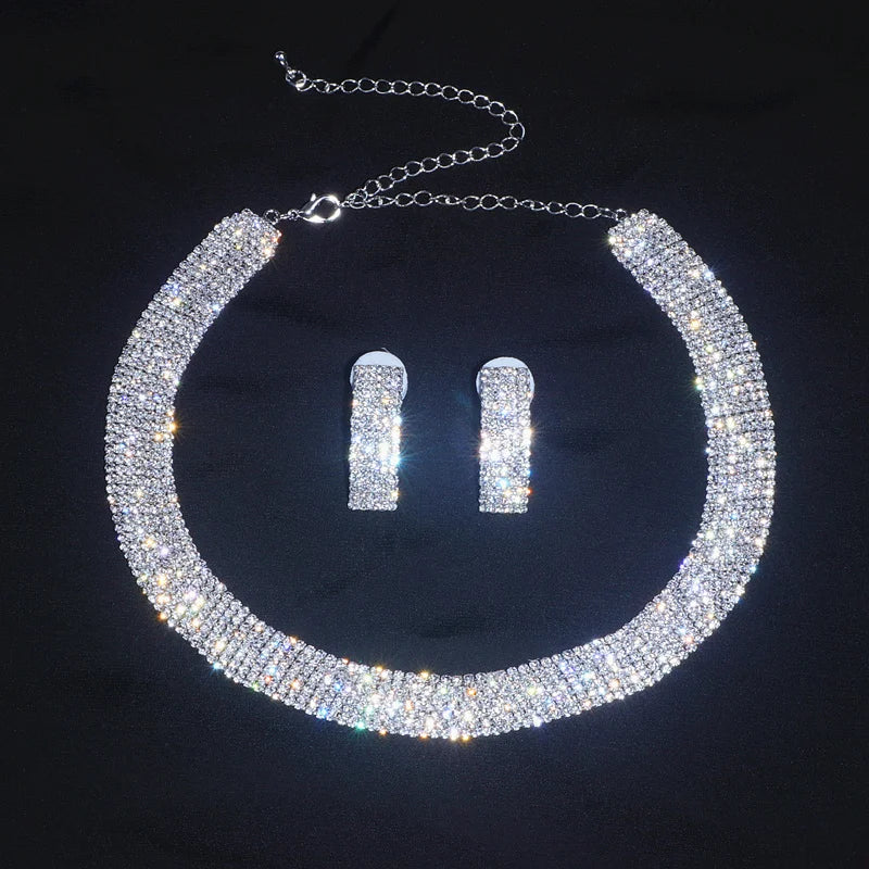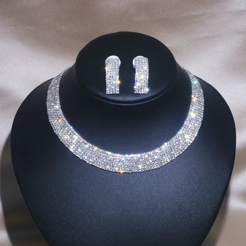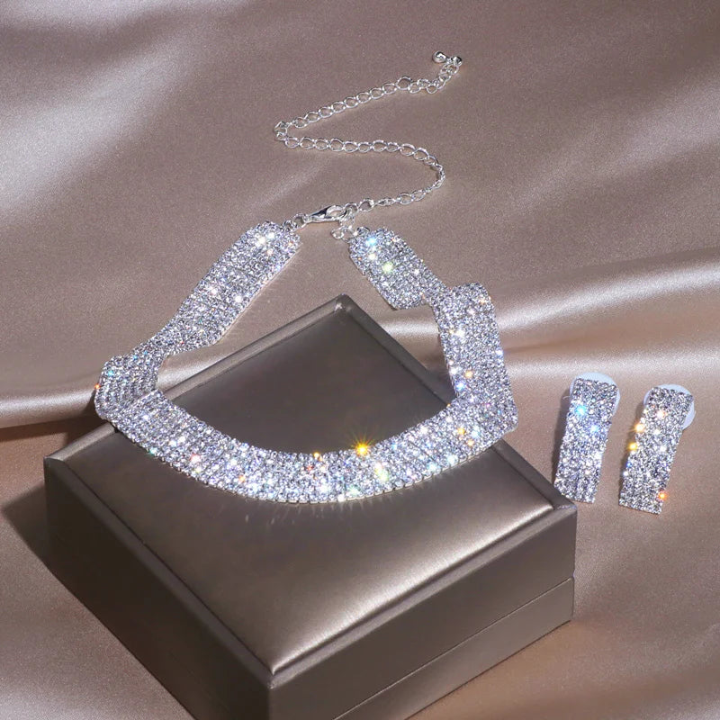 2025 Luxury Classic Female Engagement Jewelry Fashion Crystal Necklace Earrings Set Wedding Party Bridal Jewelry Sets Bijoux