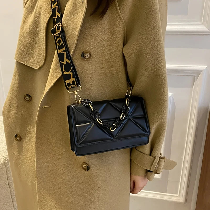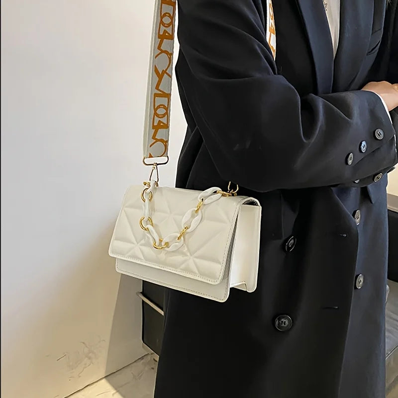 2025 New Fashion Women's Bag - Simple & Casual Retro Shoulder Bag with Wide Strap, Trendy Small Purse with Chunky Chain