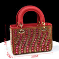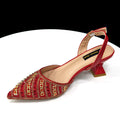 2025 Shiny Italian Fashion Pointed Toe Women Heel Fashion Rhinestone Decoration Fuchsia Color Shoes And Bag Set