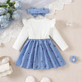 2pc/Set childrens' baby girl Dress Color blocking Broken flowers Big Bow Princess Dress+Headband 0-24 Months Baby Fashion Dress