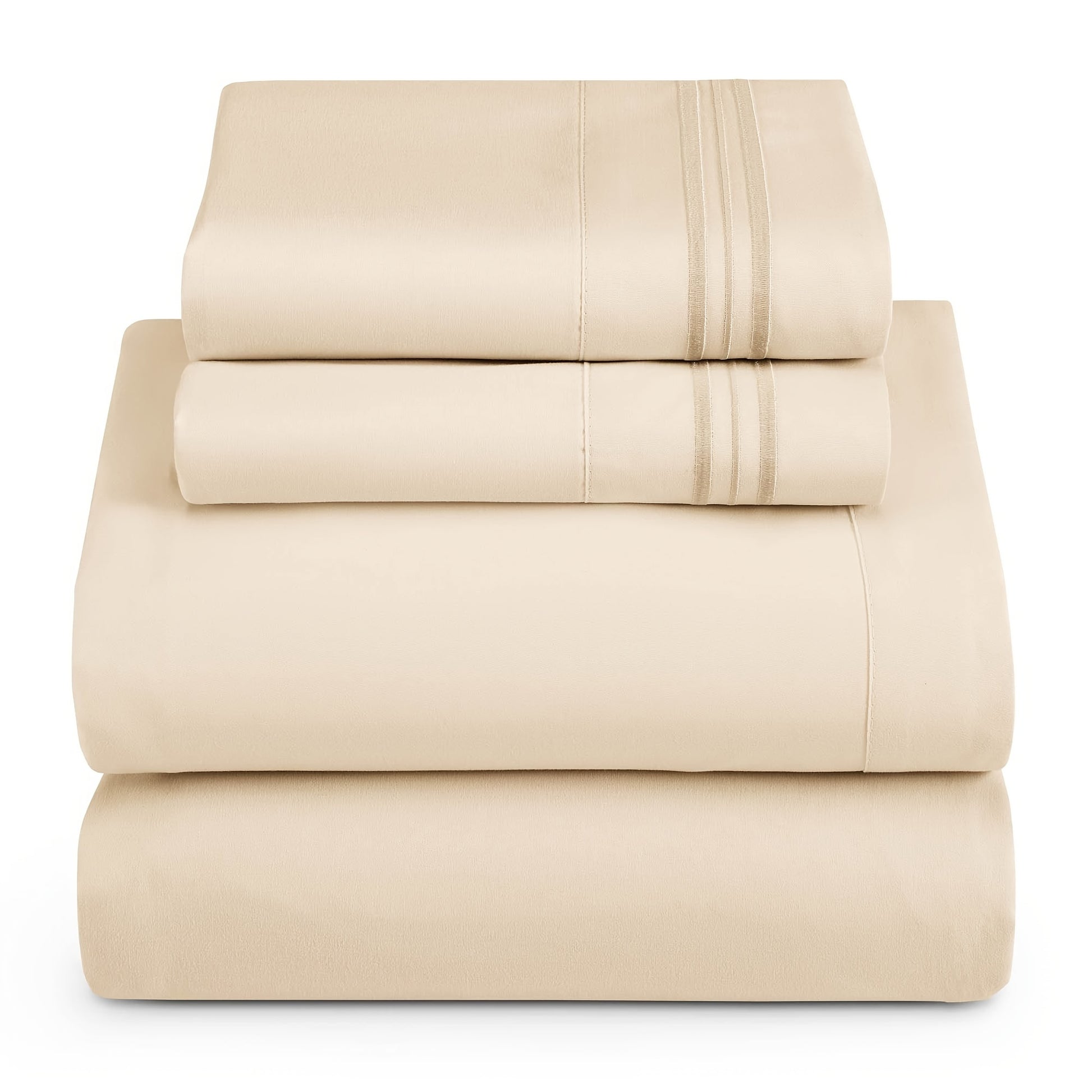 3/4pcs Beige Synthetic Fiber Sheet Set, Soft Brushed Microfiber Luxury Bedding Set, Suitable for Bedroom Rooms, Including 1 Sheet + 1 Sheet + 1/2 Pillowcase (Without Pillow Core), Deep Pockets, Easy to Care For, Not Fading An