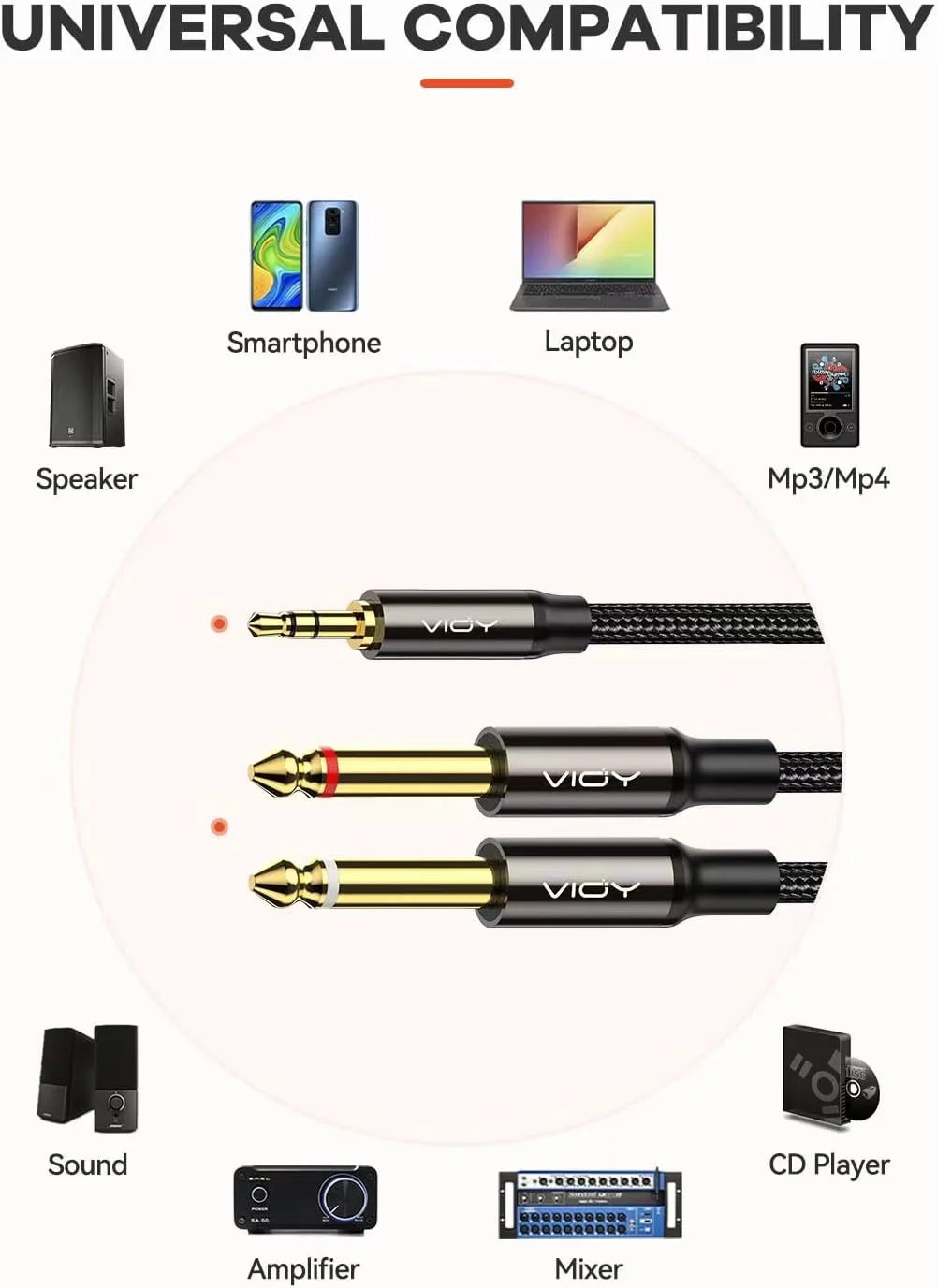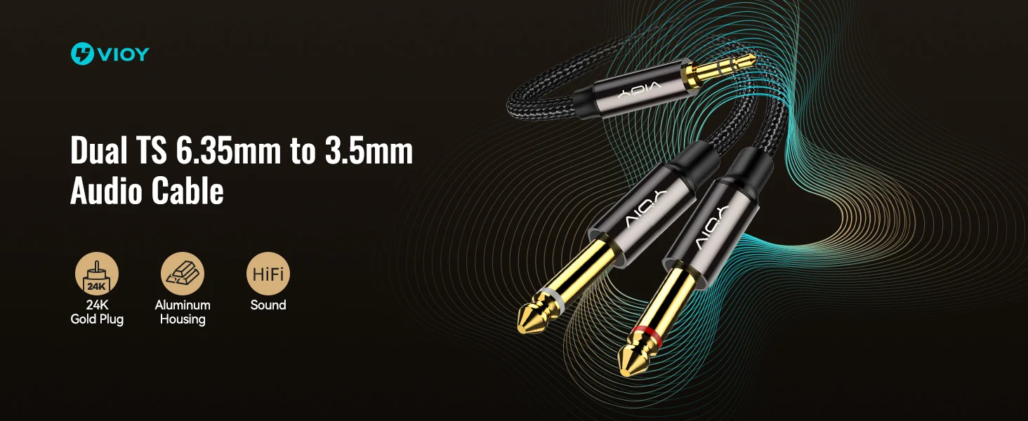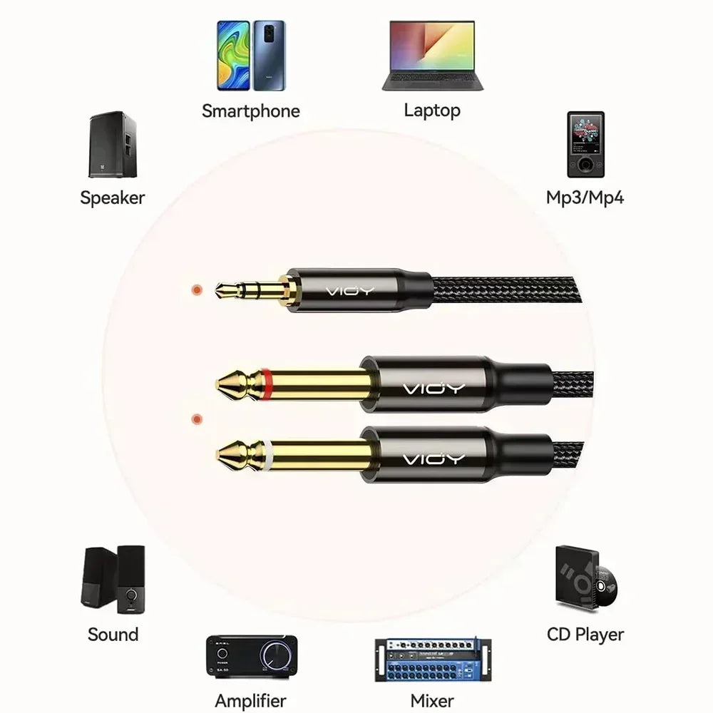 VIOY dual 6.35mm to 3.5mm audio cable provides clear Hi-Fi sound, Perfect for connecting portable devices for power amplifier,home systems, mixers etc. It bring a exceptional music experience particular in studio or live performances.