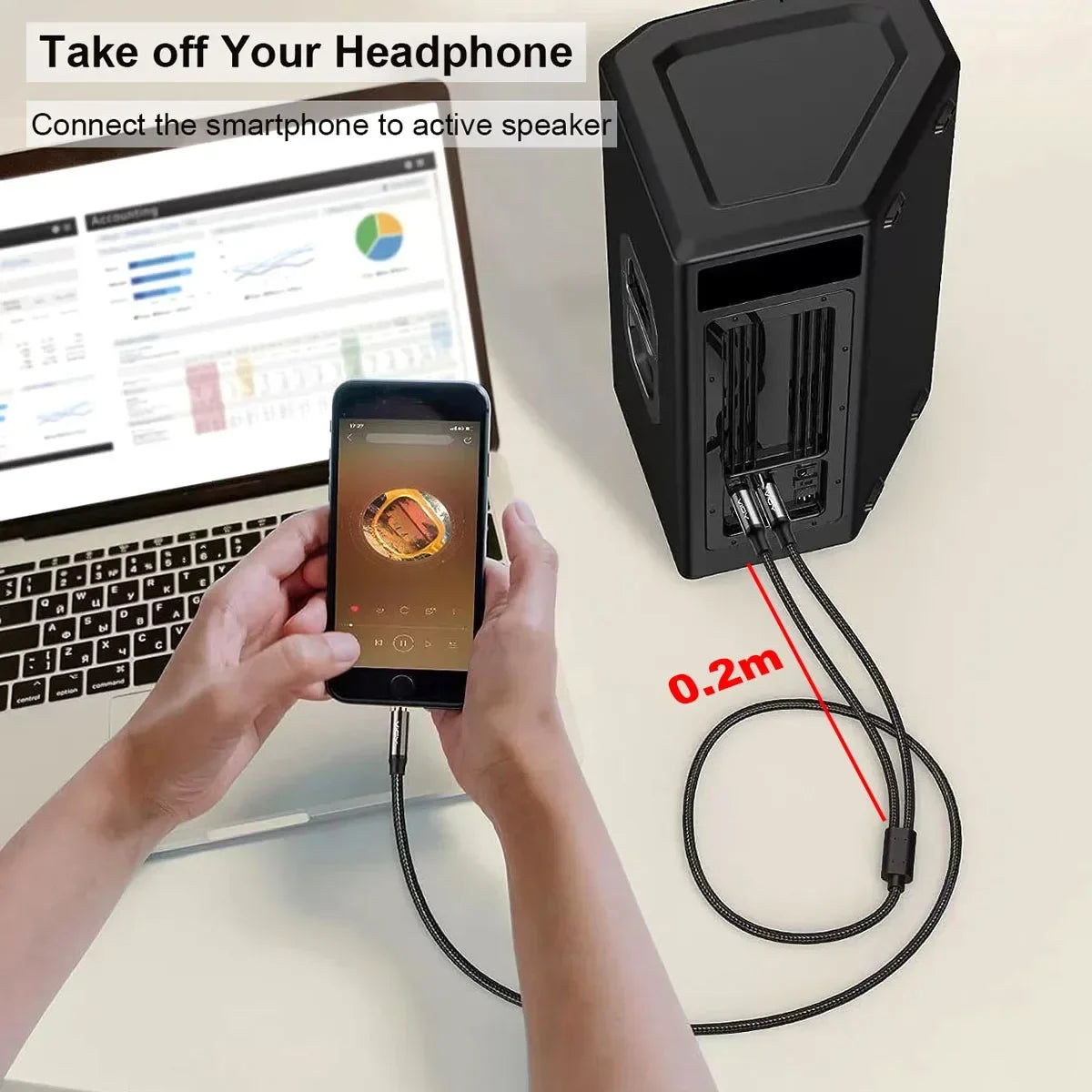Features 2: 1/8 to 1/4 Stereo Cable