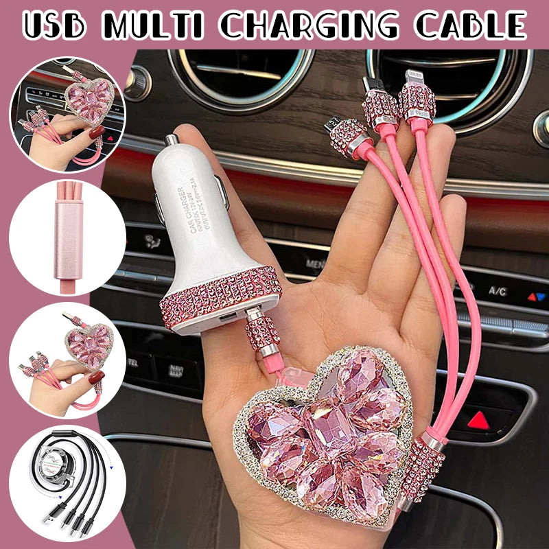 3 IN 1 Bling Charging Cable Diamond Goddess Love USB Multi Charging Cable Rhinestone Car Fast Charger Woman Car Accessories