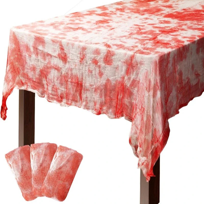 【Halloween Decoration】This item includes 1 OR 3 bloody gauze tablecloths to take creepy atmosphere of your Halloween party to the next level. You can attract the attention of your neighbors, passers or children and provide a realistic and scary atmosphere.