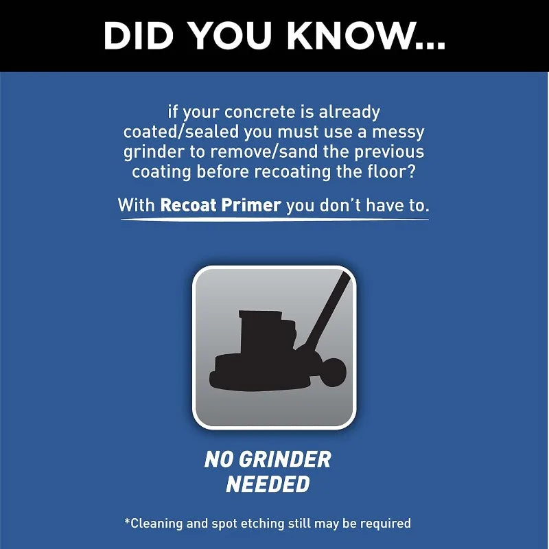 Premium recoat primer works over any garage coating or sealed floor