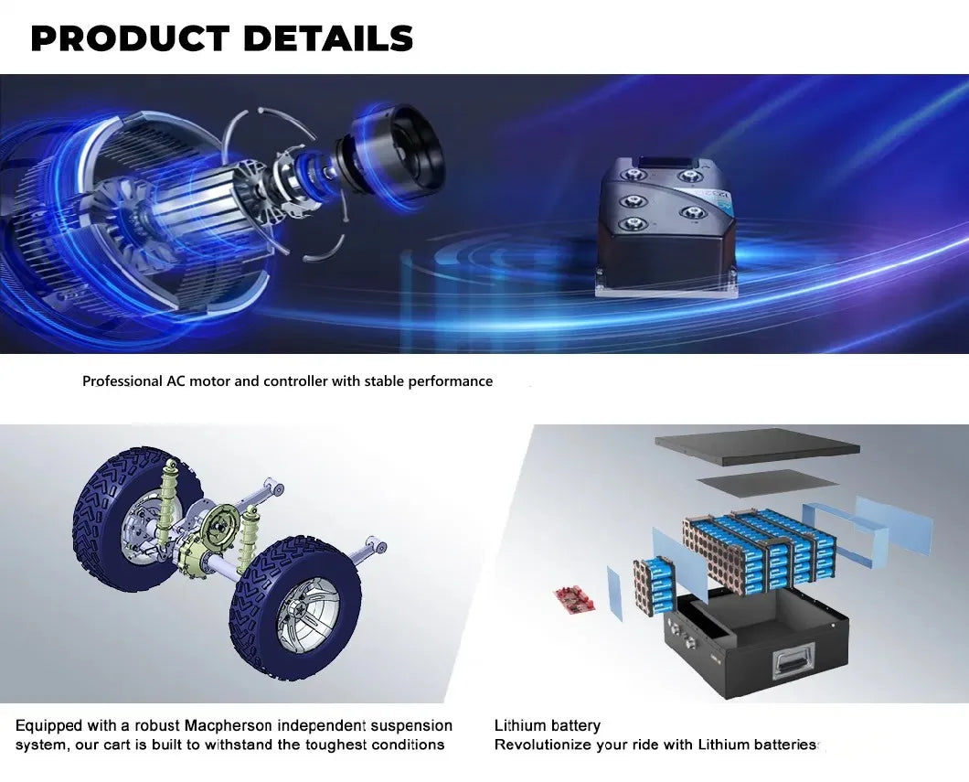 4 6 Persons High Speed 45km/h Lithium Battery Buggy Club Car Electric Lifted Off Road Golf Cart