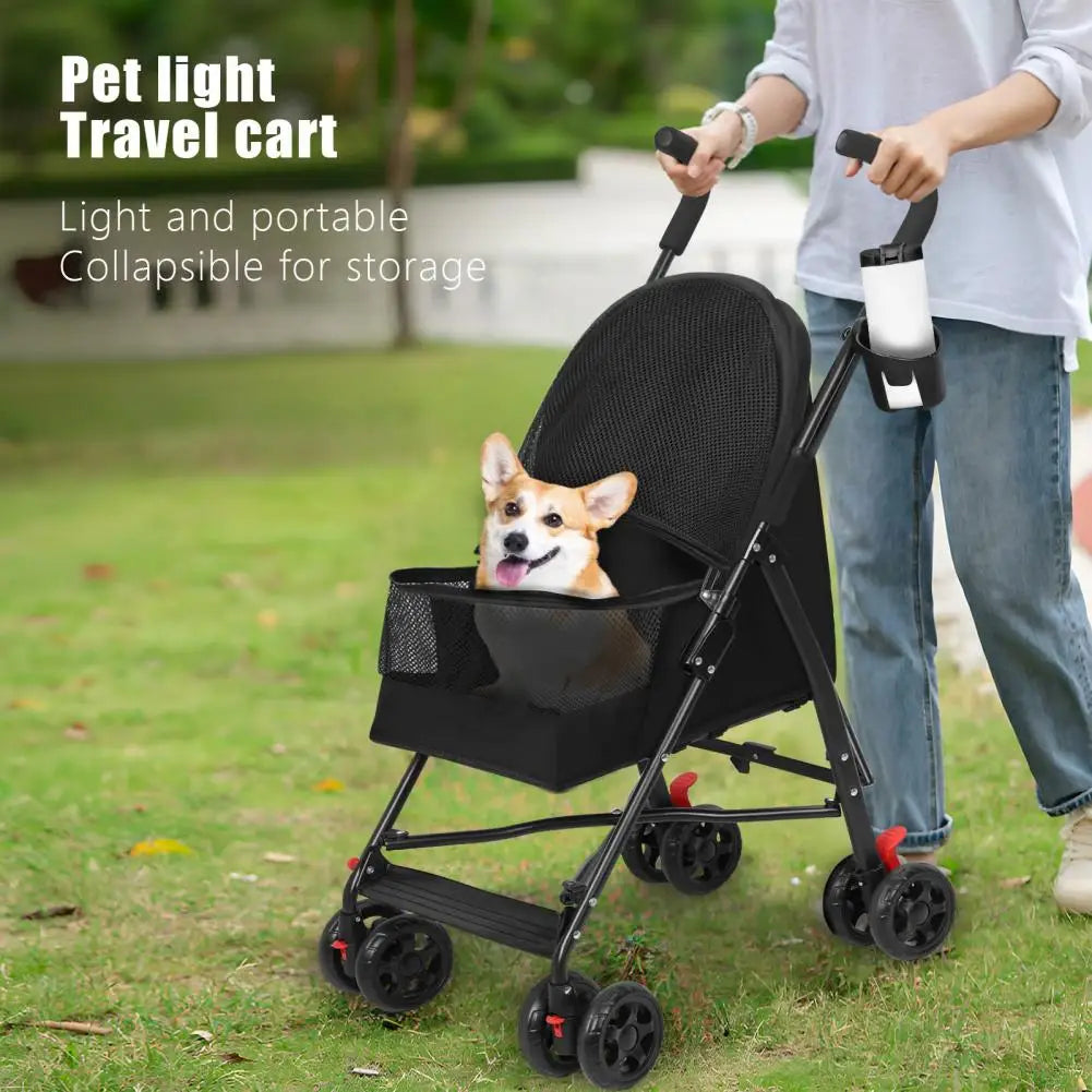 4 Wheels Pet Stroller, Pet Stroller for Medium Small Dogs, Foldable Puppy Cage Jogger Stroller with Sun Cover, Pad and Rear Storage Bag, Breathable and Visible Mesh