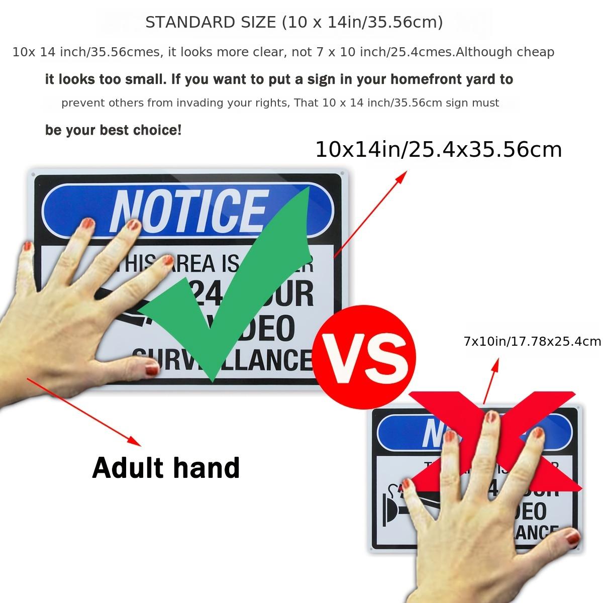 "4pcs/pack 24-Hour Video Surveillance Warning Signs, 10""x14"" Rust-Free Aluminum Signs, UV-Printed, 4 Pre-Drilled Holes, Durable Weatherproof for Home and Office"