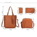 4pcs/Set Women Pu Leather Handbag Shoulder Bag For Women Ladies Business Work Pouch Purse Messenger Satchel Tote Bags