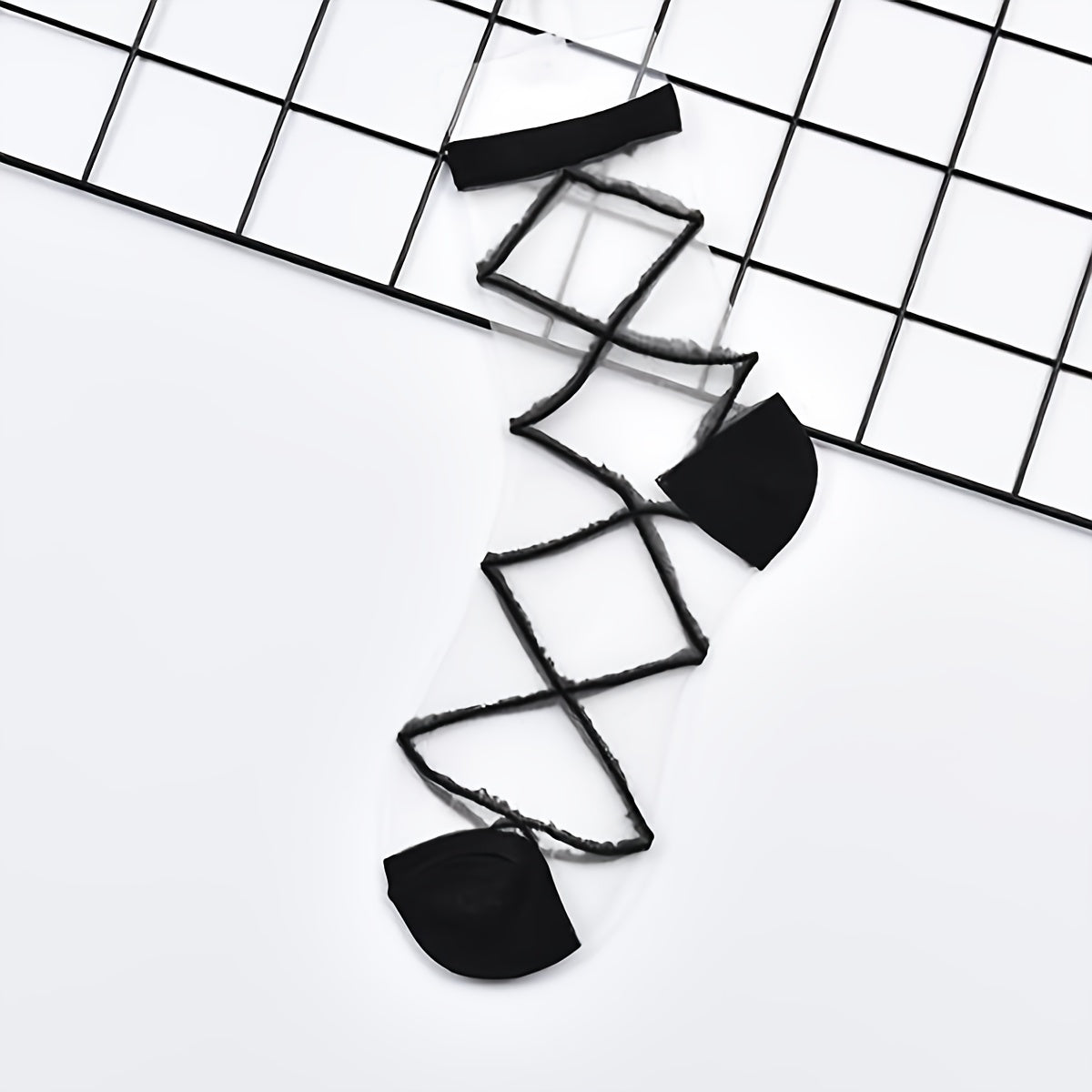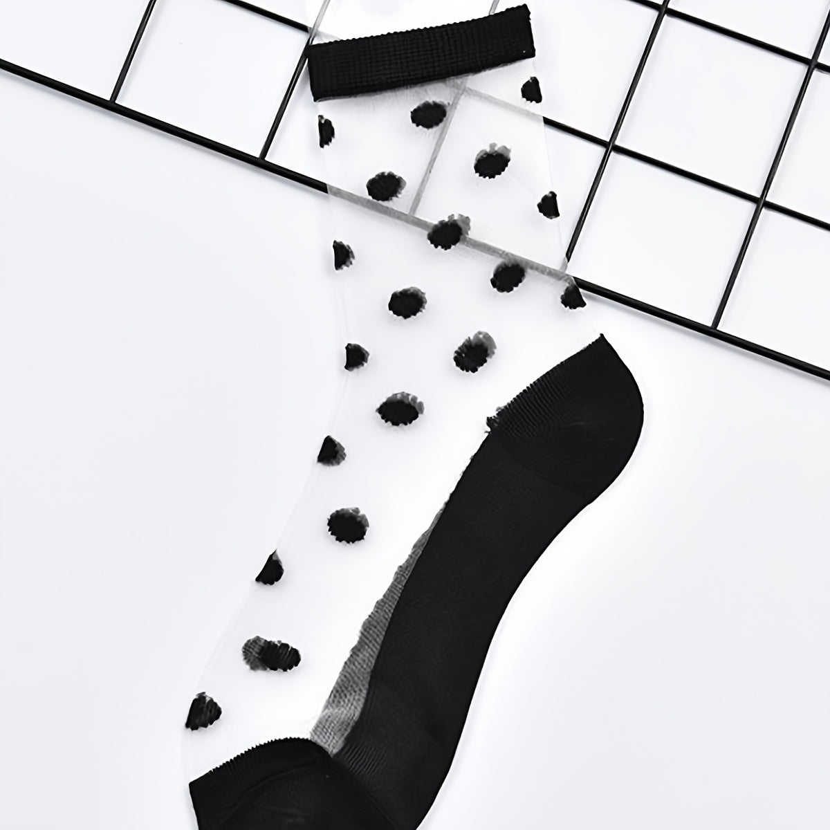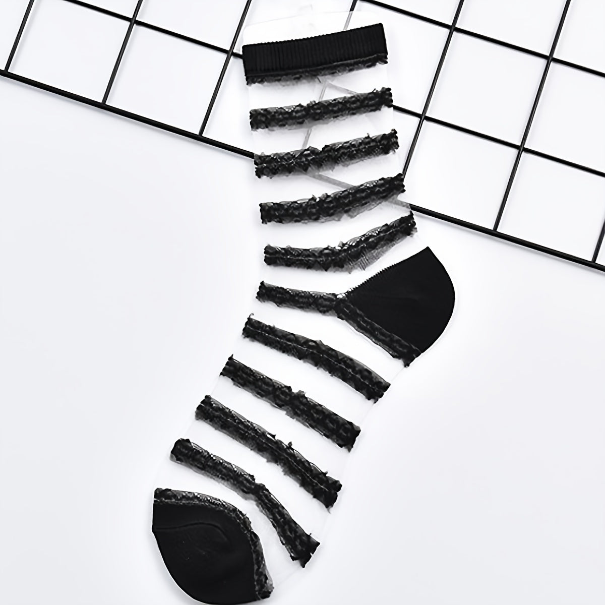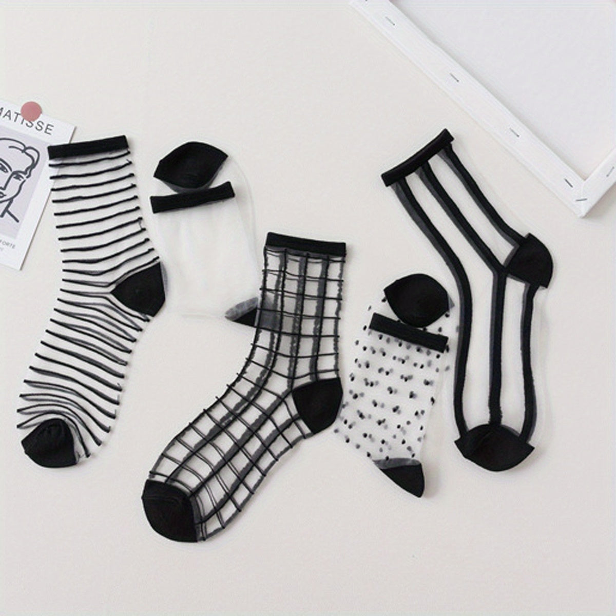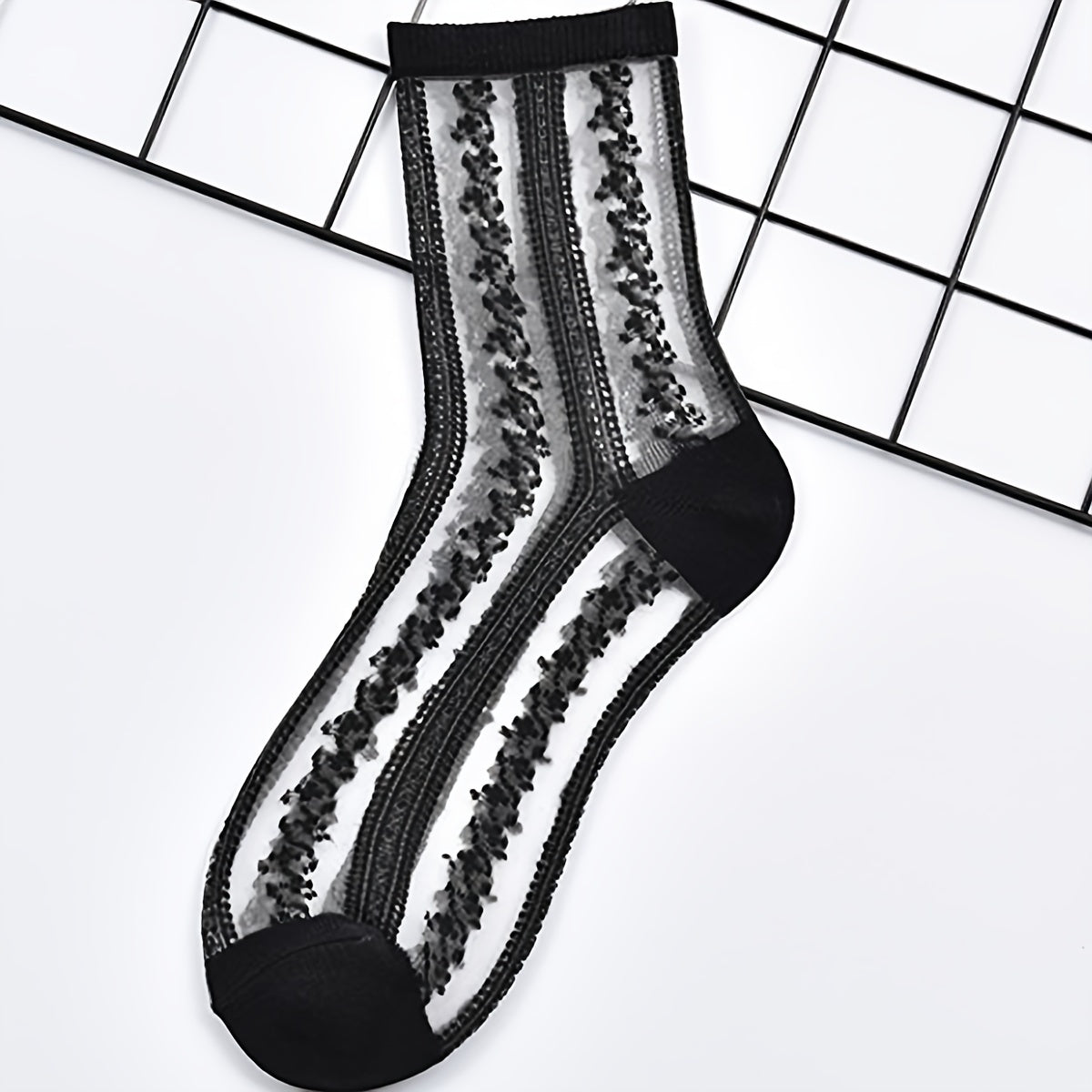 5 Pairs Lace Semi-Sheer Crew Socks, Cute & Comfortable Mesh Stockings, Women's Socks & Hosiery