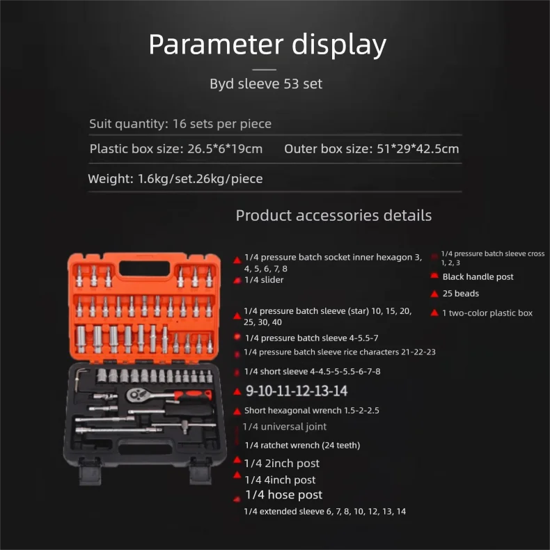 53PCS Sleeve Car Repair Tool Kit Socket Set Ratchet Torque Wrench Combo Motorcycle Vehicle Maintenance Auto Repairing Tool Set