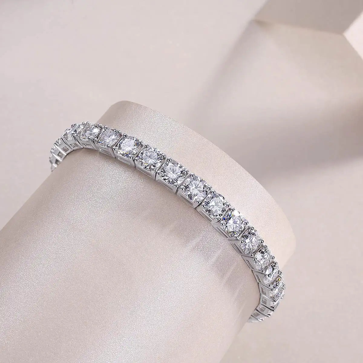 Fine Luxury Gemstone Bracelet 925 Sterling Silver 5mm Moissanite Tennis Chain Gold Plated