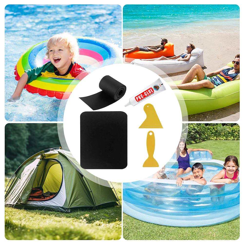 5Pcs/Set Boat Repair Patches with Glue PVC Inflatable Boat Patches Waterproof Air Beds Repair Patches for Swimming Pools Canoe