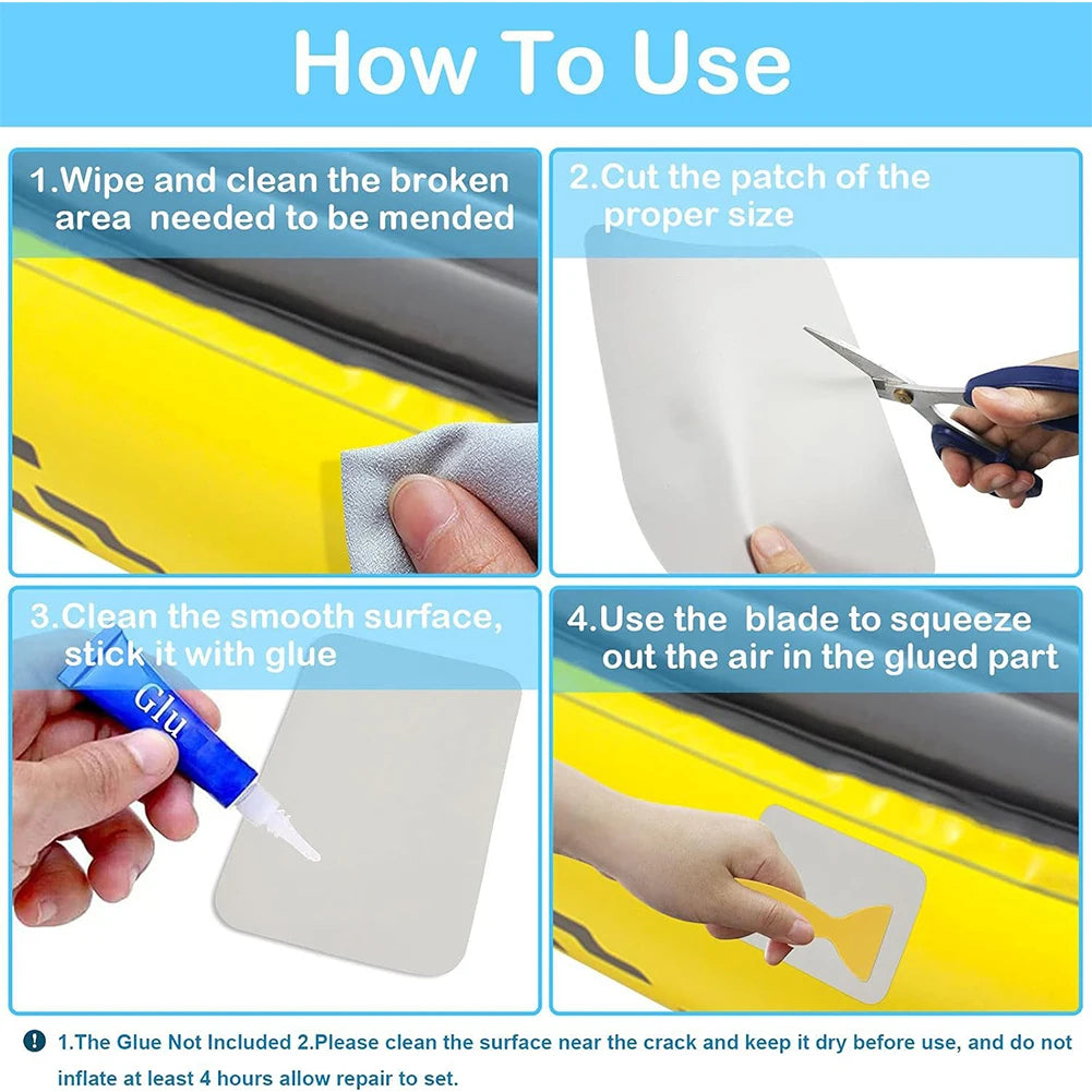 1.Abundant Quantity: Each boat repair patches kit comes with ample patches to cover your routine maintenance, replacements, and even sharing with fellow paddlers. You'll have enough supply to ensure your inflatable boat remains in tip-top condition through many adventures.