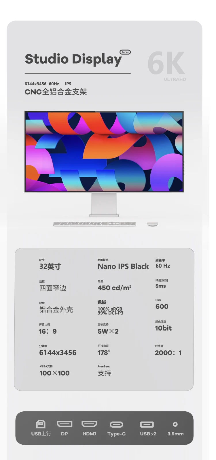 A:27-Inch 5K aluminum alloy hole model HDR600 mirror calibrated one by one
