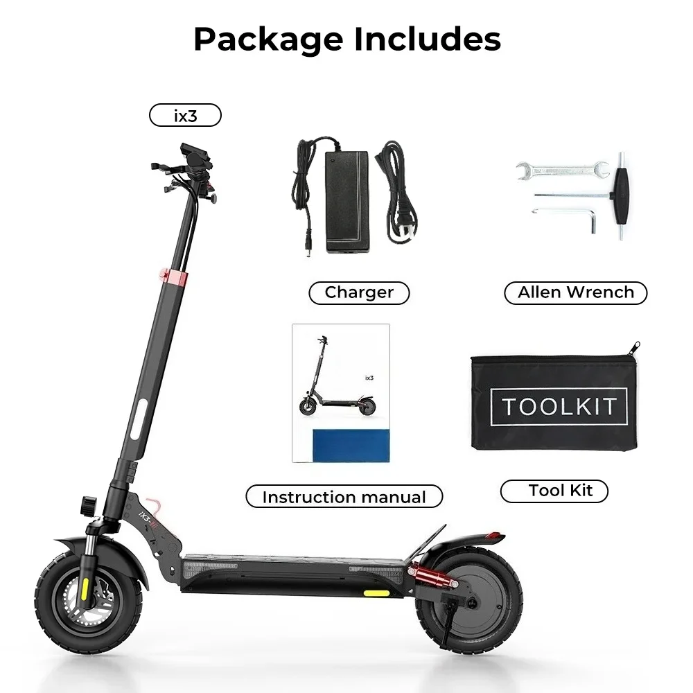 10-inch all-terrain pneumatic tiresDesigned for maximum adhesion and stability on uneven surfaces.