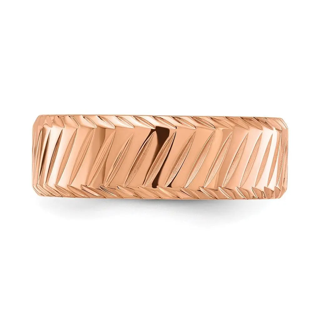 8mm Polished Rose IP Stainless Steel Chisel Grooved Band Fashion Rings