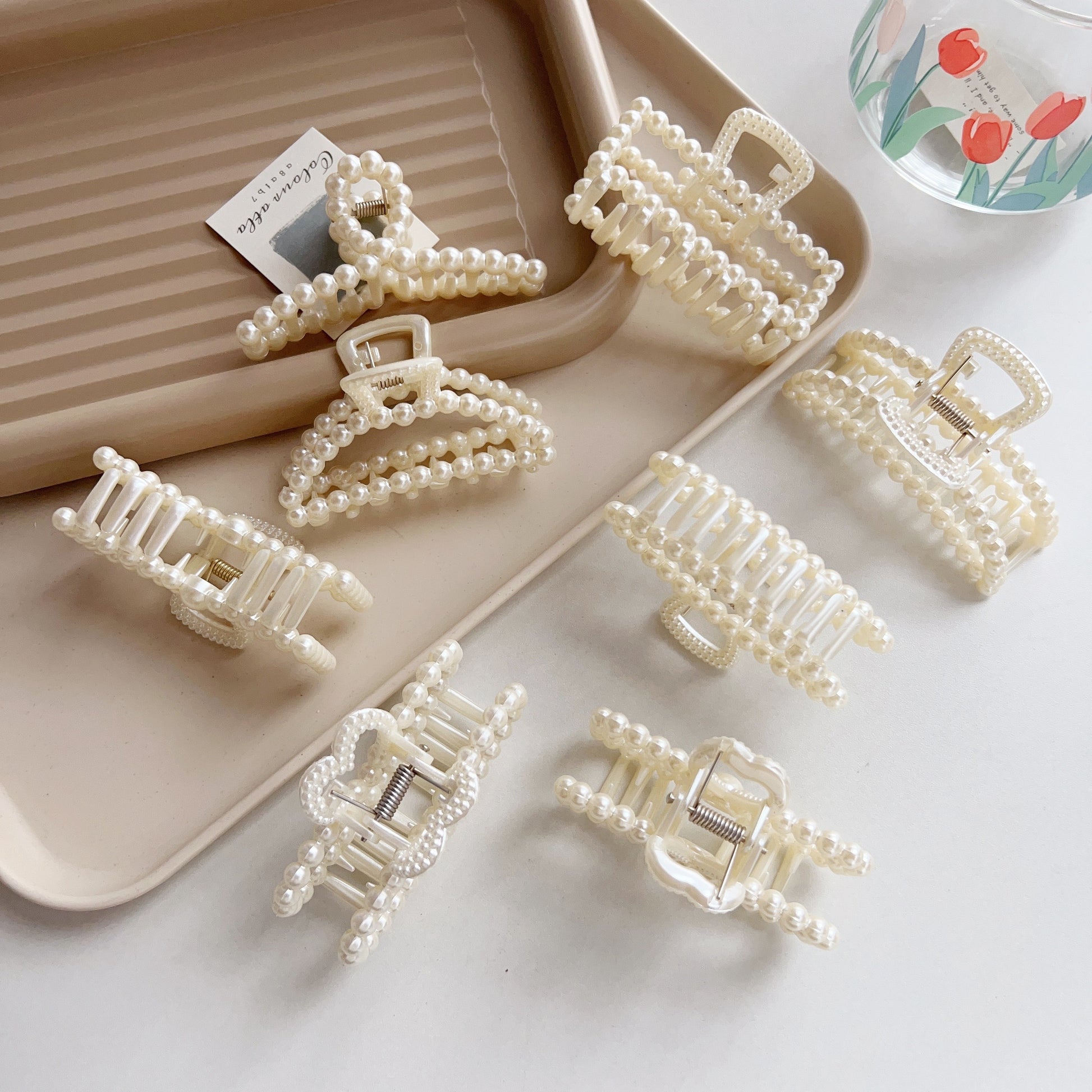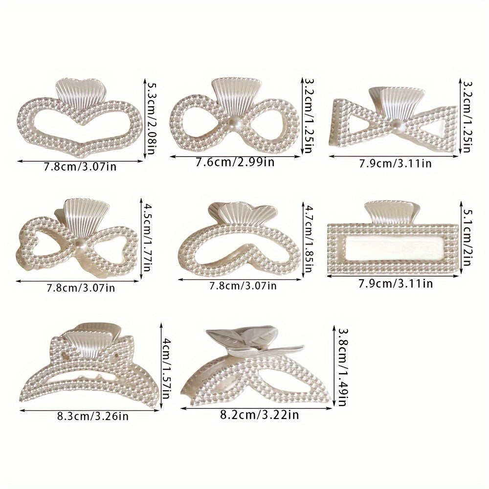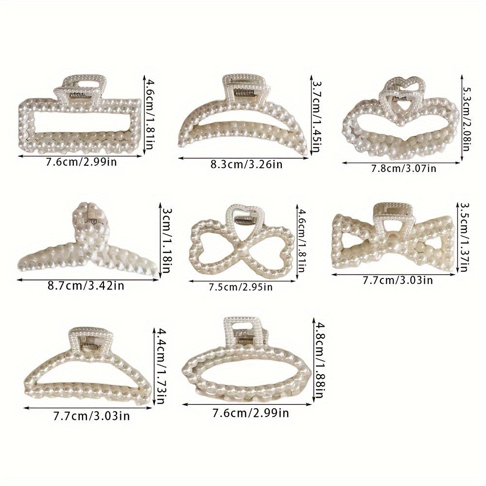 8pcs Luxurious Faux Pearl Hair Claw Clips - Non-Slip Strong Hold Grip, Perfect for Thick Hair, Easy to Use, Comfortable, Stylish Hair Accessories for Women