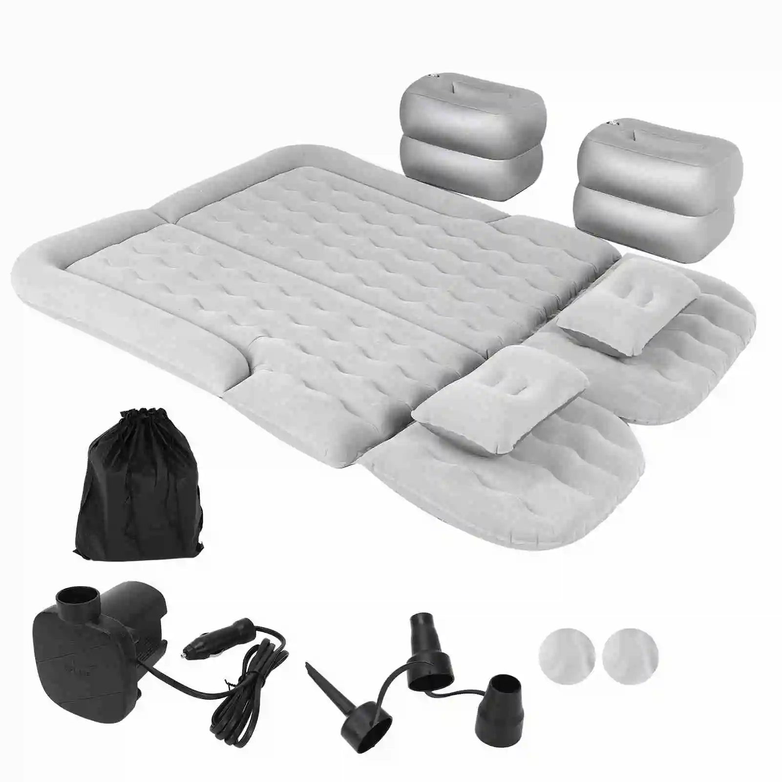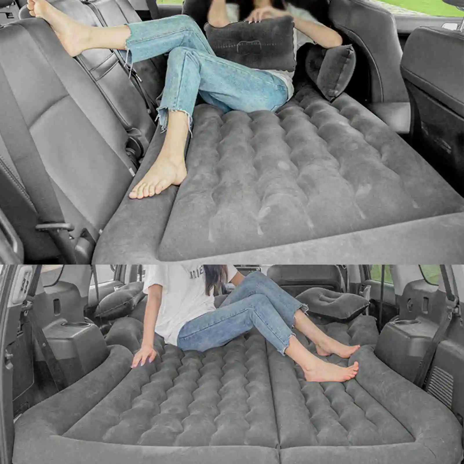 1. SUV air mattress camping bed cushion pillow, inflatable thickened car air bed with electric air pump, flocking surface portable sleeping pad for travel camping.2. Made of flocking material, great resilient(can support 3 large people and no leak) comfortable and durable.
