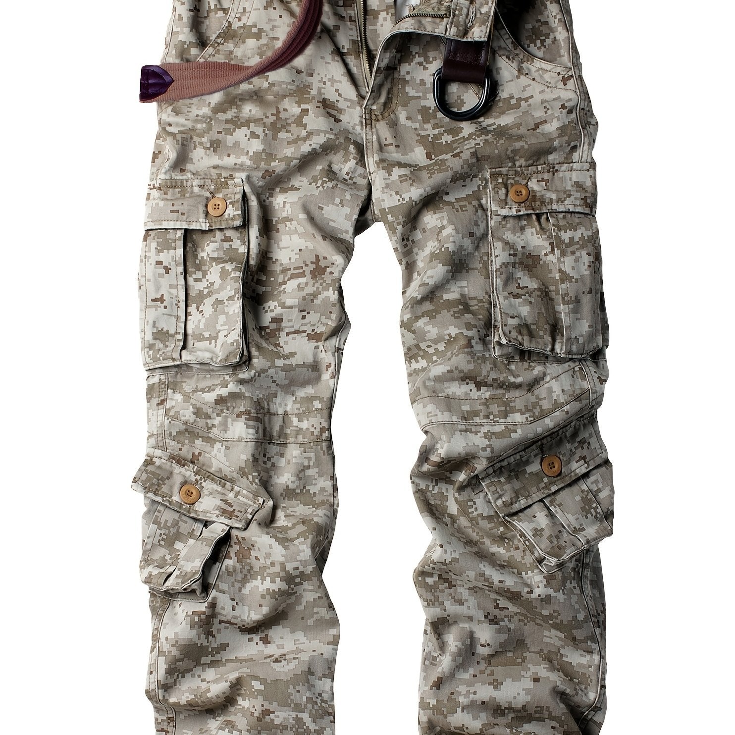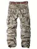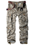 AKNAVY Solid Cotton Camo Multi Flap Pockets Men's Straight Leg Cargo Pants, Loose Casual Outdoor Pants, Men's Work Pants For Hiking Fishing Angling