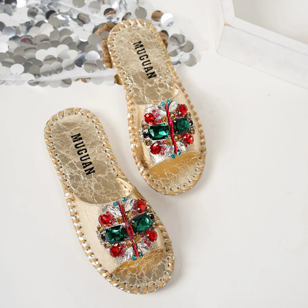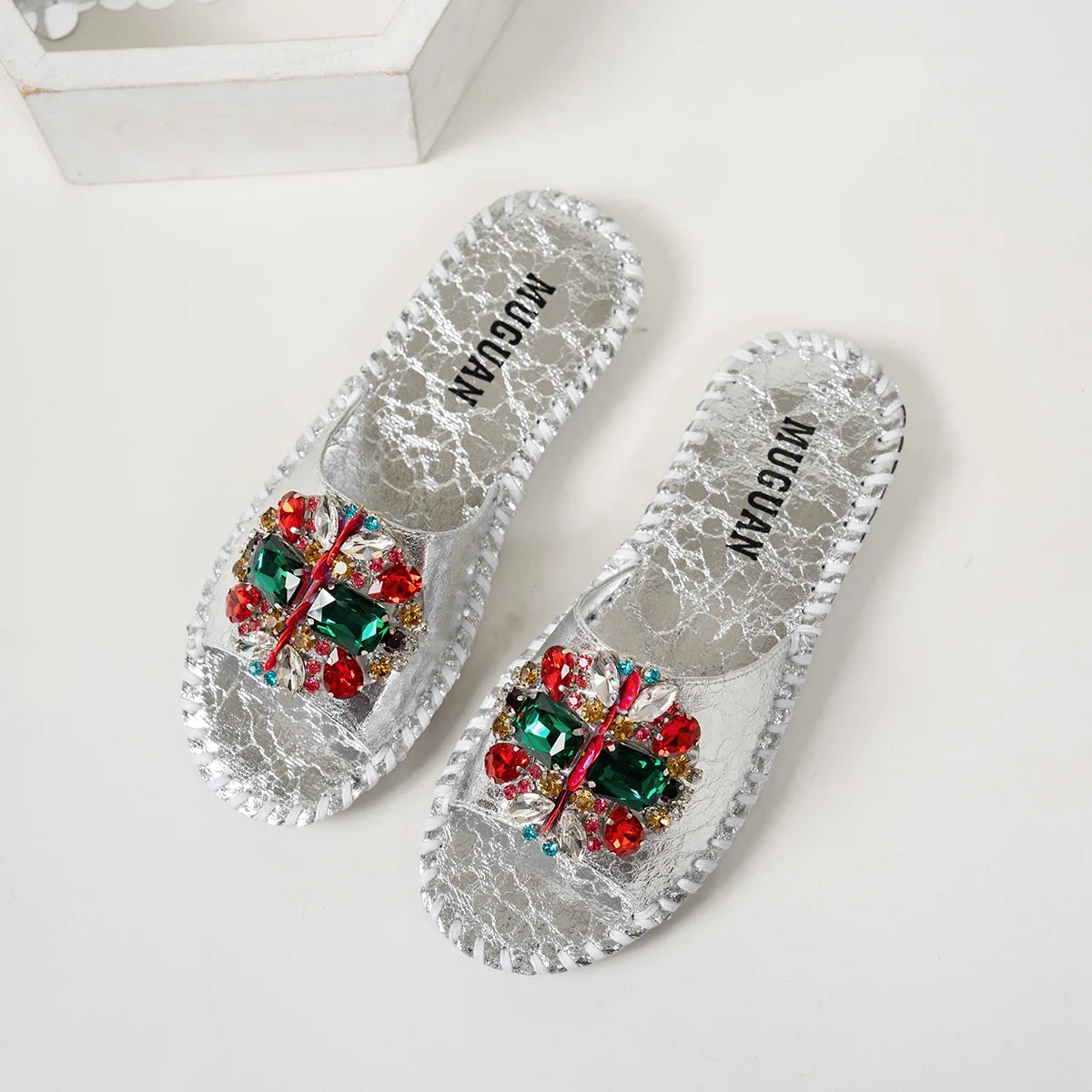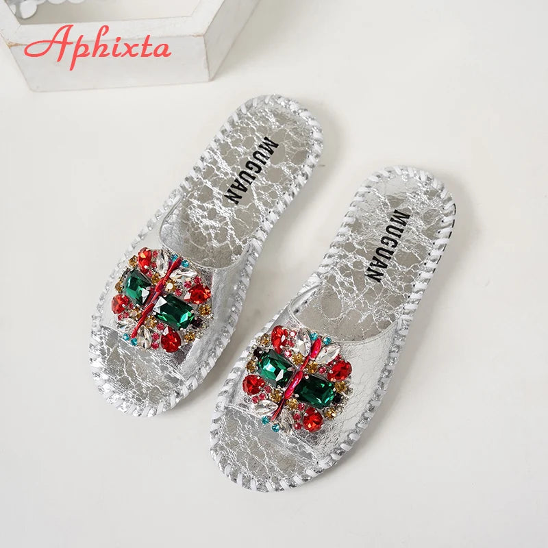 Aphixta Bling Crystal Luxury Slippers Women Round Toe Colorful Summer Shoes Flat Heel Outdoor Slides zapatos de mujer pantunflas