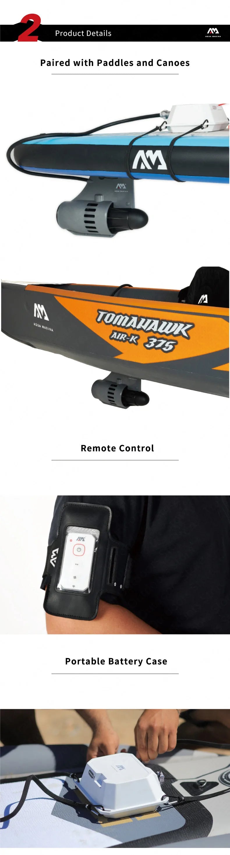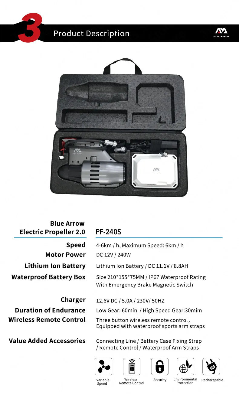 AQUA MARINA Boat Electric Propeller 4-6km/h 12V DC Electric Motor Paddle Remote Control Portable Board Paddle Trolling Motor