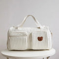 Baby Diaper Bag Cute Bear Flower Embroidery Pattern Mommy Bag Baby Beige Cotton Fabric Zipper Diaper Handbag New Luggage Bag