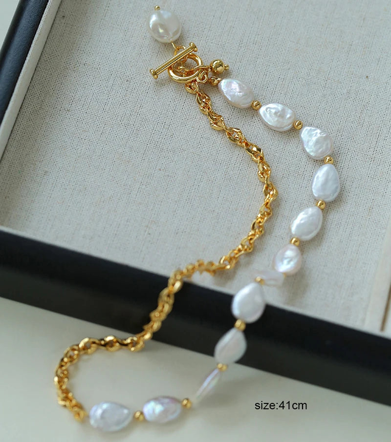 Baroque Pearls Bridal Jewelry Set Gold Color Women Necklace Bracelet Wedding Accessories