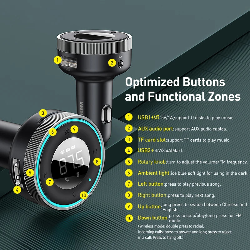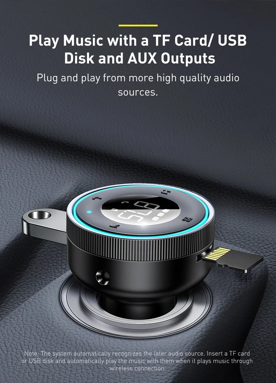 Baseus FM Transmitter Modulator Car Wireless Bluetooth 5.0 USB Fast Charger Auto Aux Radio Mp3 Player Music Hands Free Car Kit