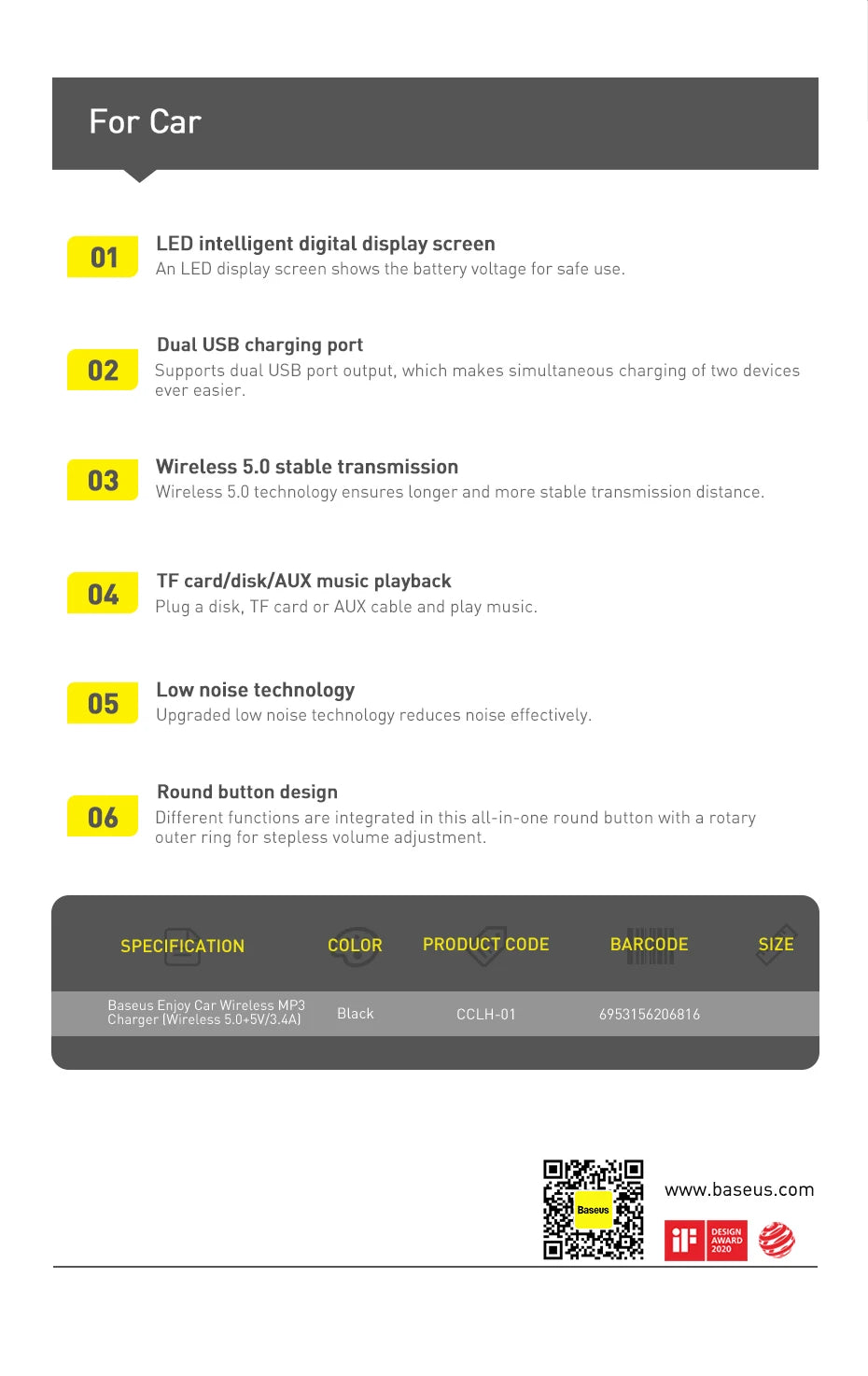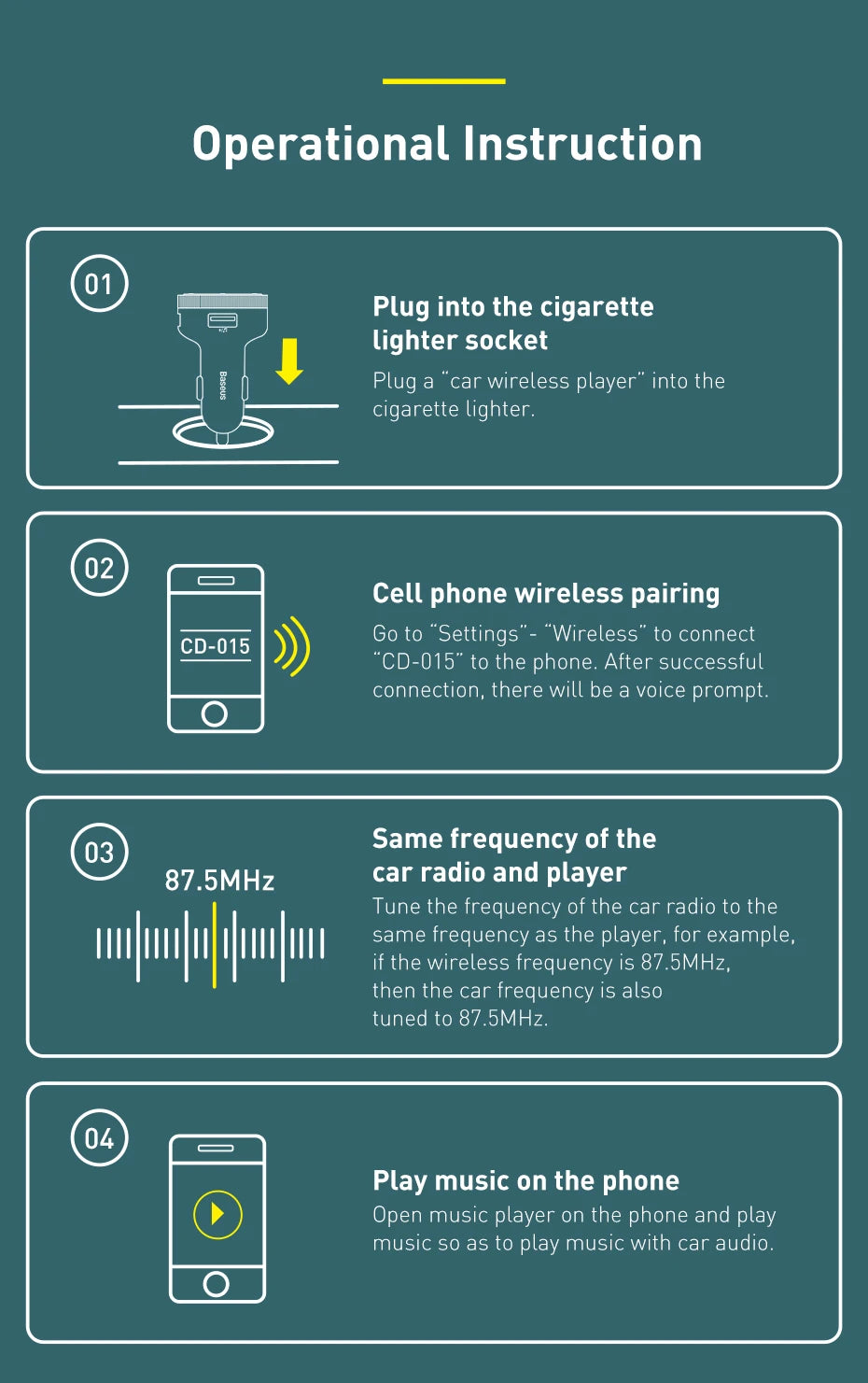 Double Reminder for Wireless Connection:Wireless indicator light flashes and a voice reminder sounds when the wireless pairing is successful.