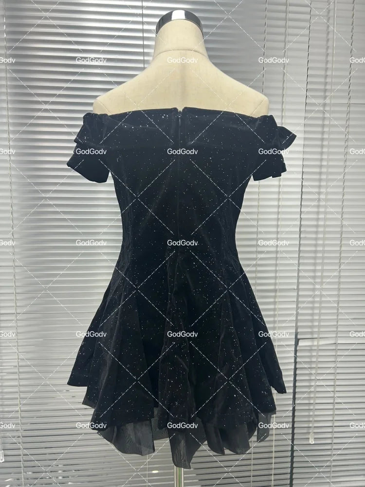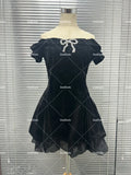 Black French Vintage Elegant Design Woman Dress Gothic Off Shoulder Retro Mini Dress Female Fairy Birthday Party Chic Outfits