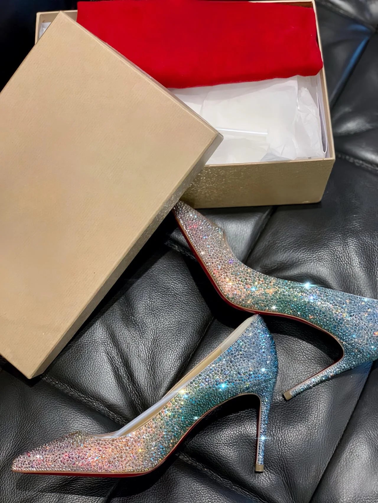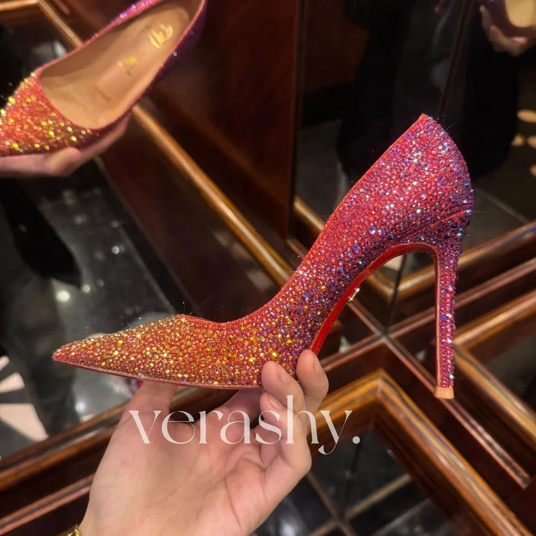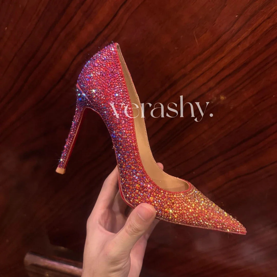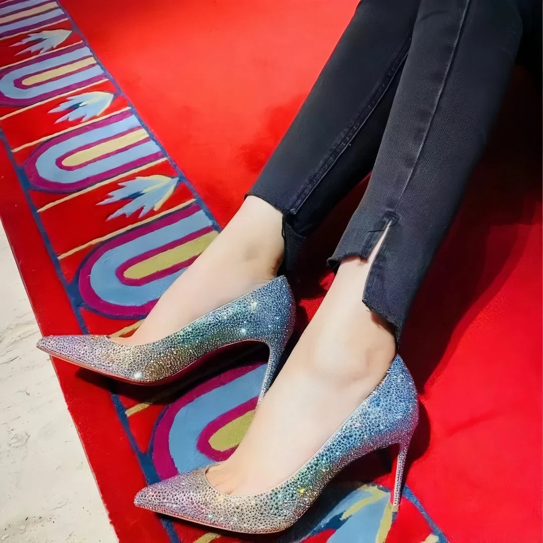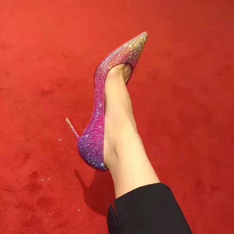 Bling Bling Crystal High Heels Woman Shoes Purple Glittering Wedding Shoes Bride Pointed Toe Shallow Rhinestone Banquet Pumps