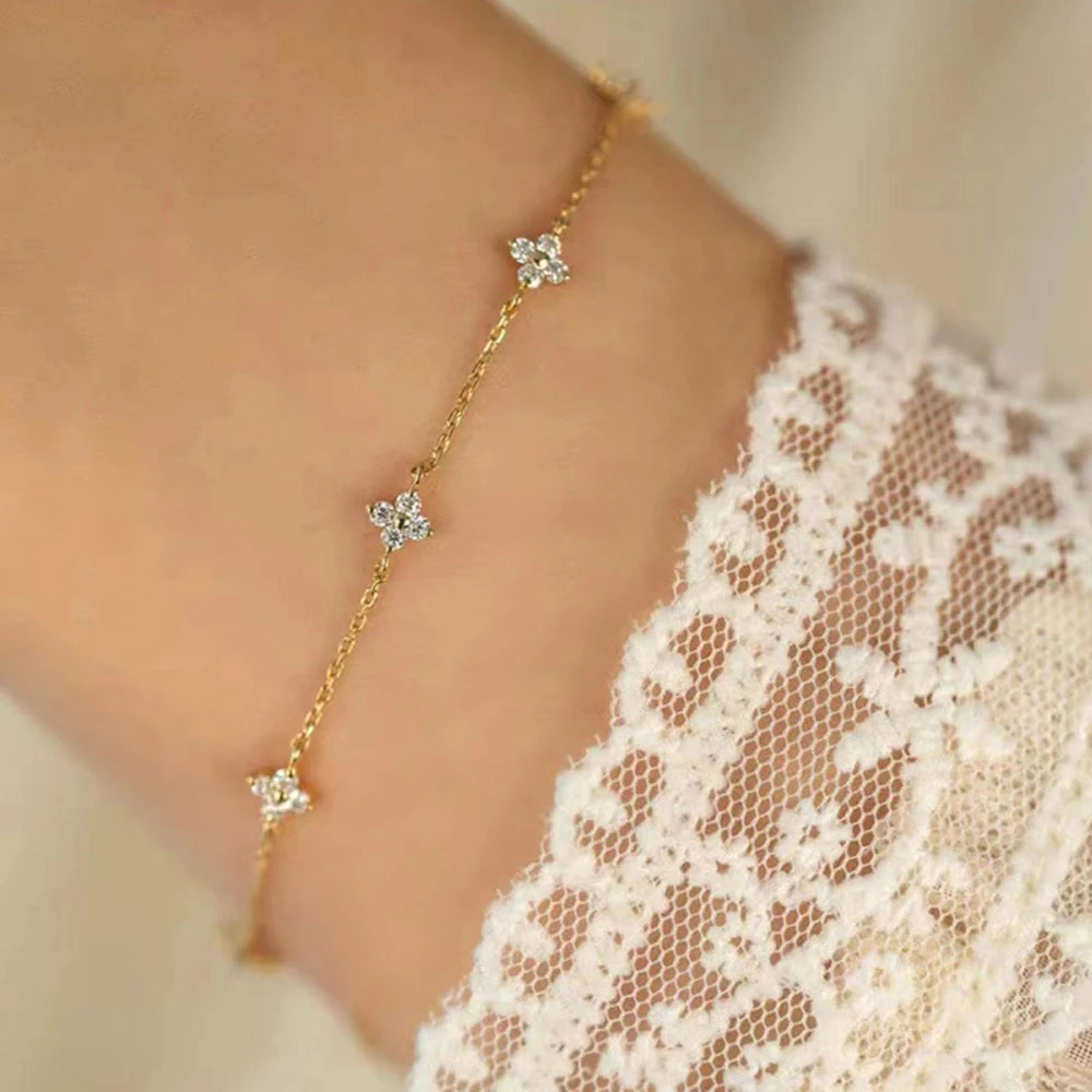 Bling Bling Zircon Four Leaf Flower Chain Bracelet for Women Niche Simple Desgin Party Jewelry Accessories