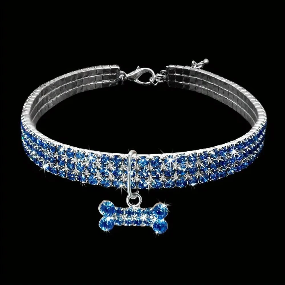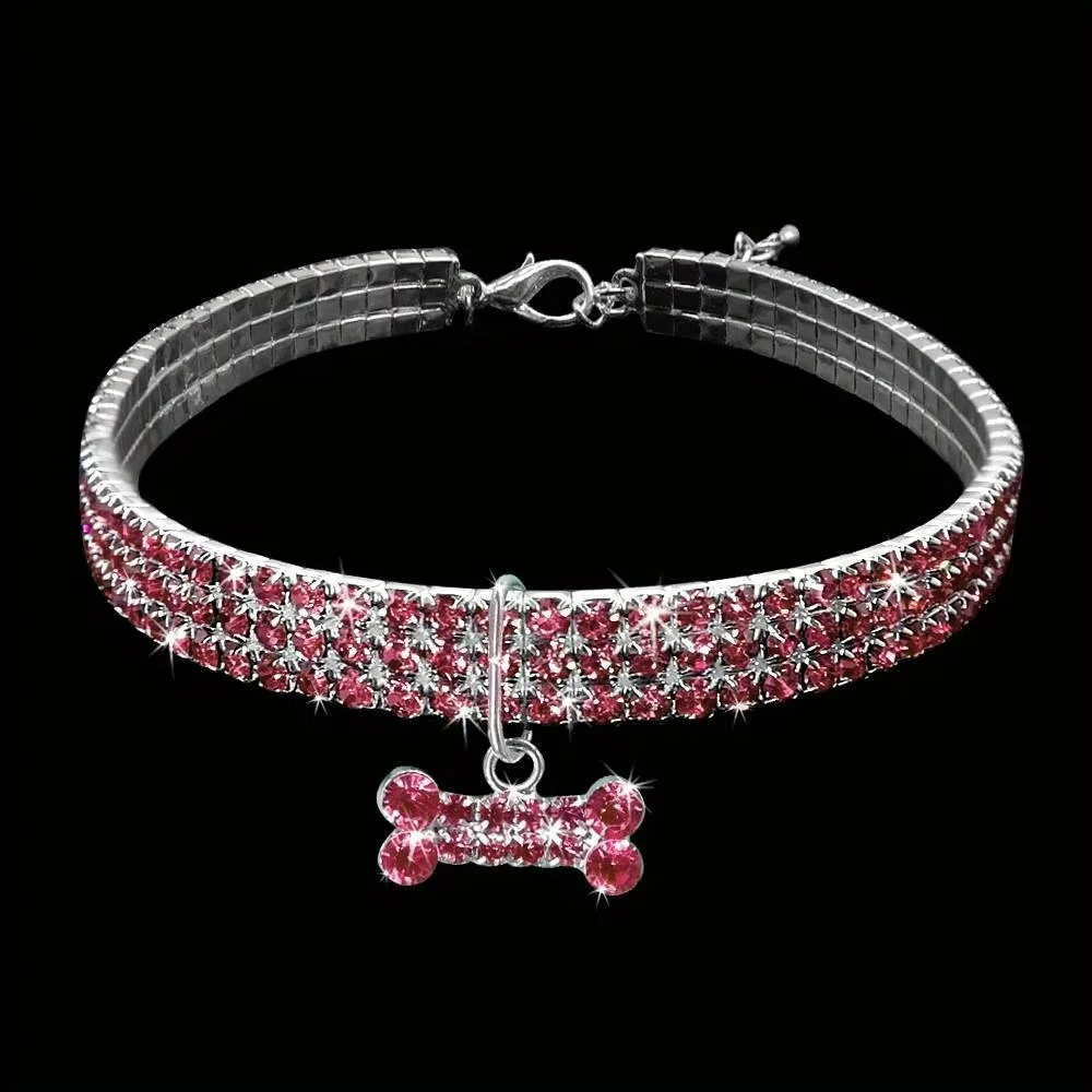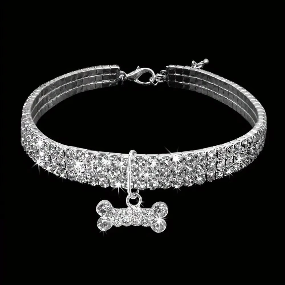 Bling Bone Pet Collar-Adjustable Necklace for Small Dogs and Cats-Cute and Fancy Accessory for Puppies-Adds Style and Glamour