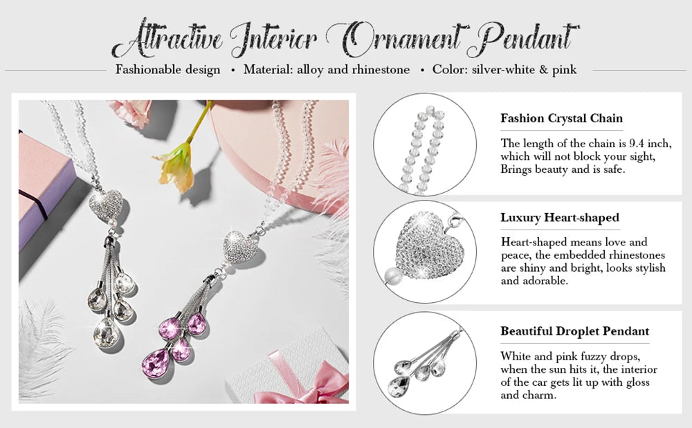 1. Beautiful and sweet: these pretty car bling accessories are nice decorations for women's cars, bling diamond car decorative hanging will give your car rearview mirror more vitality and charm