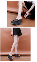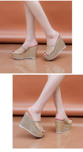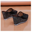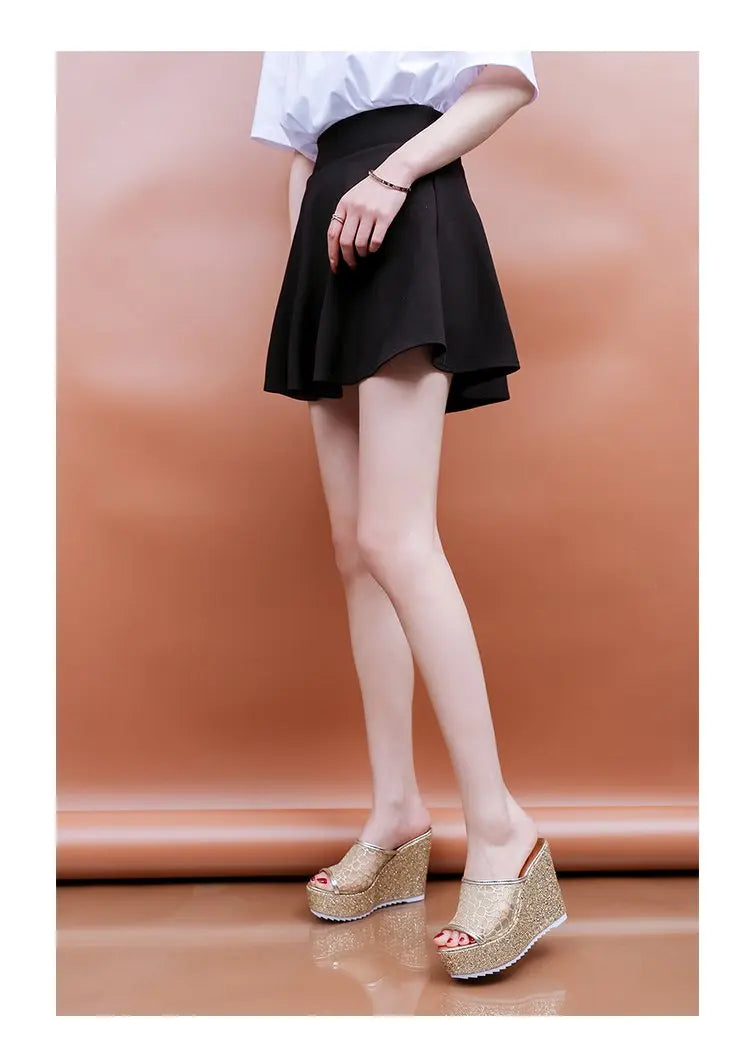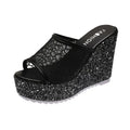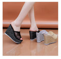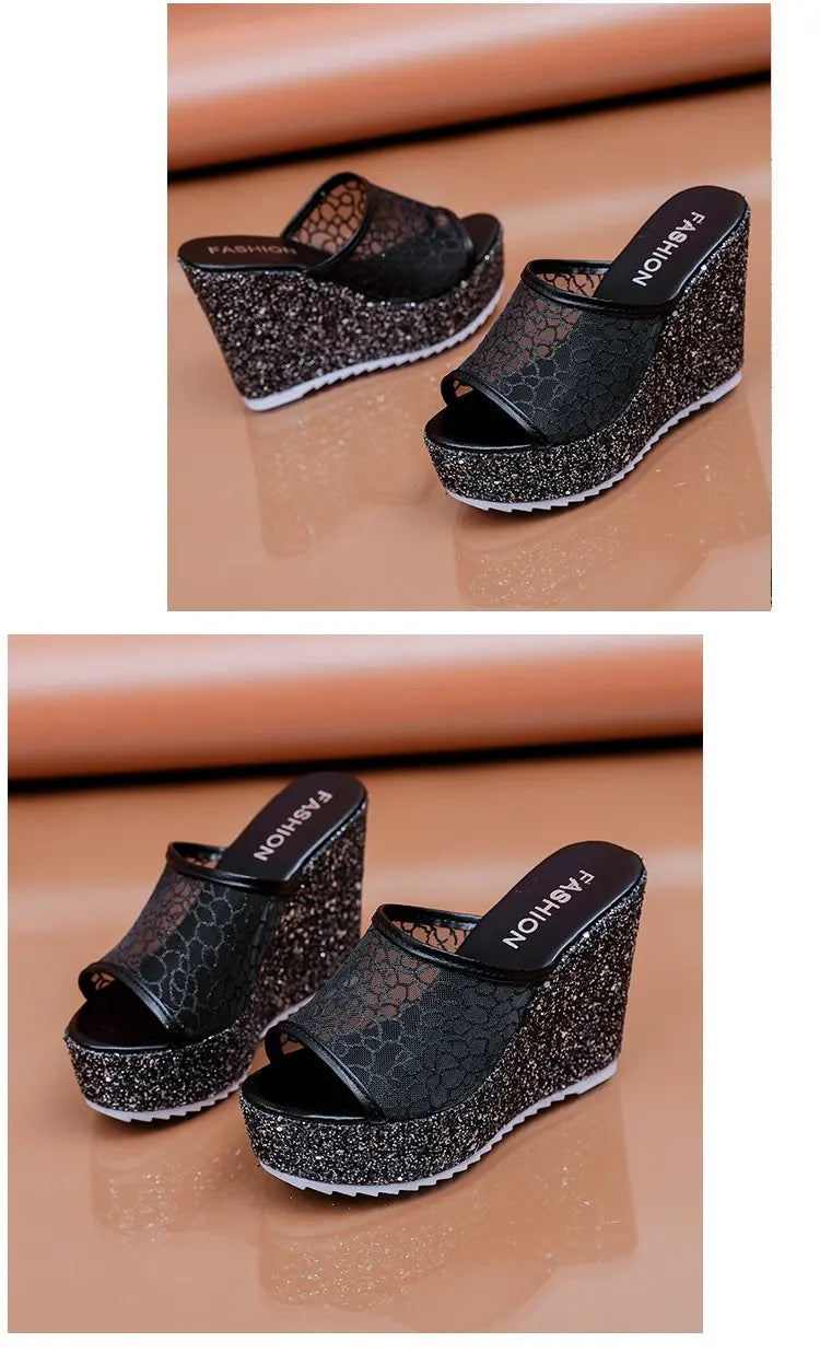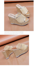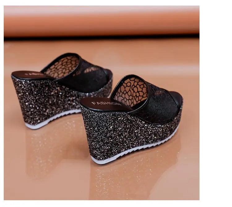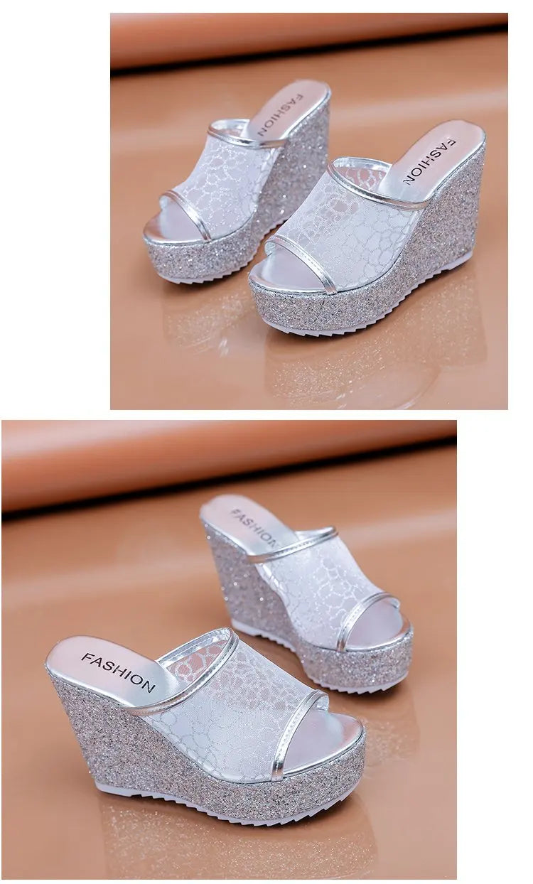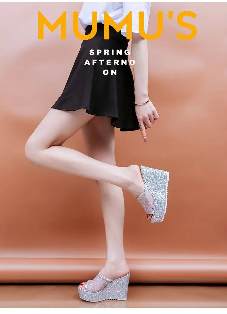 Bling Golden Women Slippers Summer Shoes Platform 4cm Outside Fitting-room 11cm High Heels Wedges Solid Mesh Female Sliver Shoes