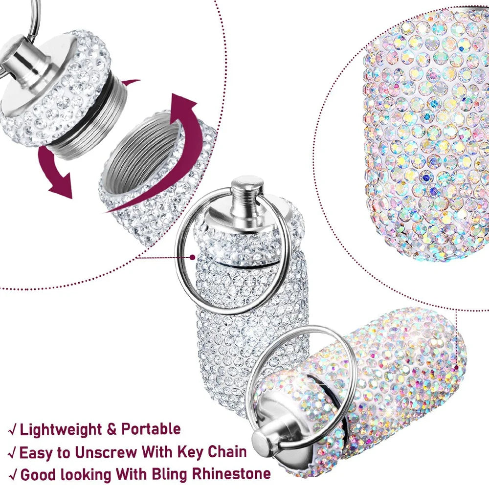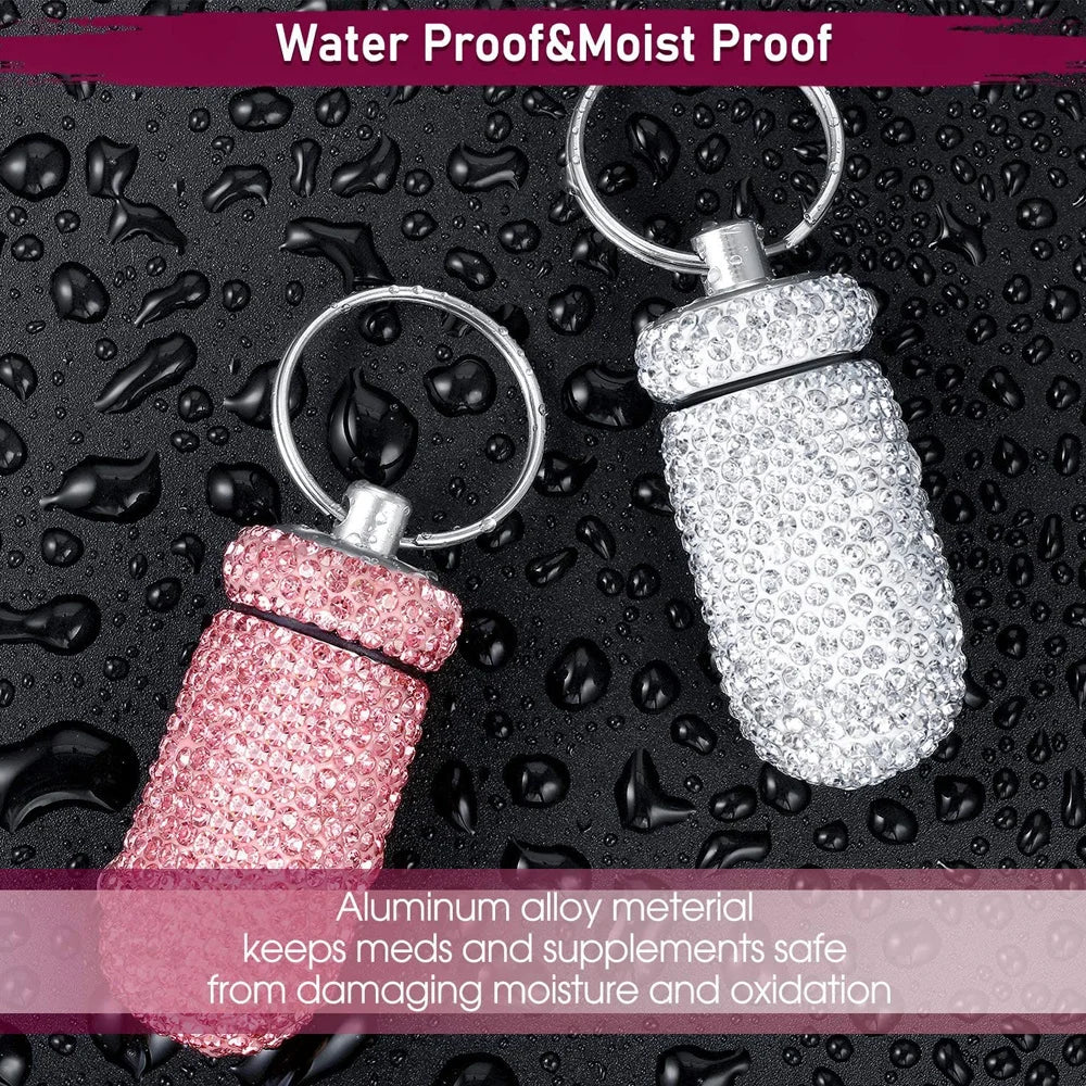 Bling Pill Container Portable Pill Bottle Case Waterproof Travel Medicine Box Crystal Mini Pill Holder Storage With Keychain