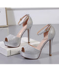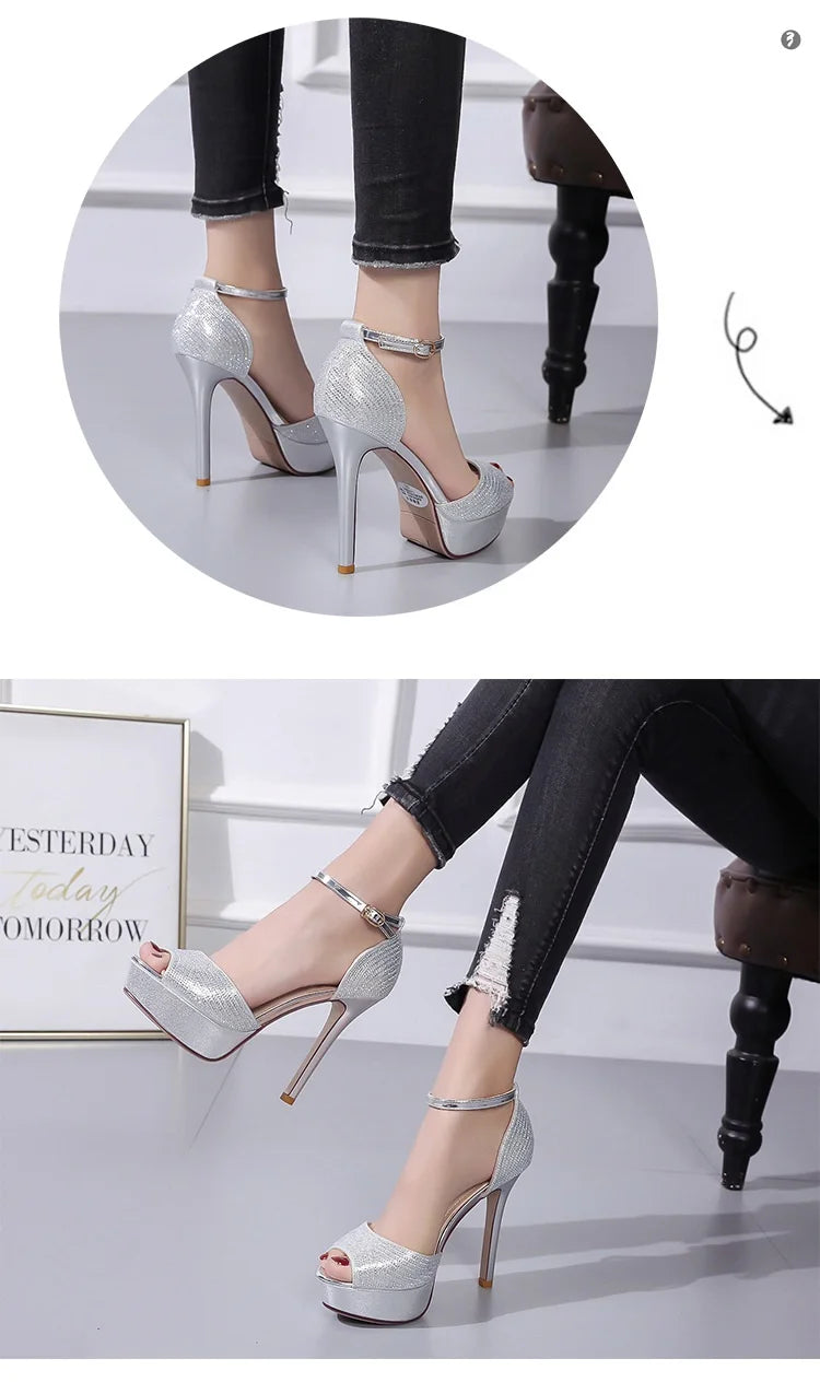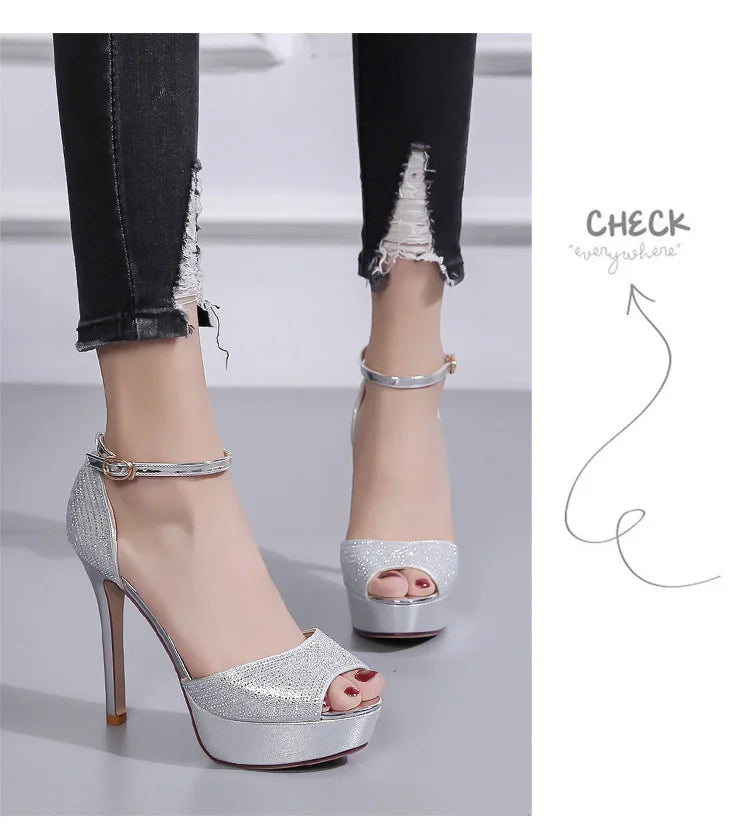 Bling Sandals Women Shoes 2019 Gladiator High Heels 12CM Platform Sandals Pumps Peep Toe Ladies Shoes Party Bridal Wedding Shoes