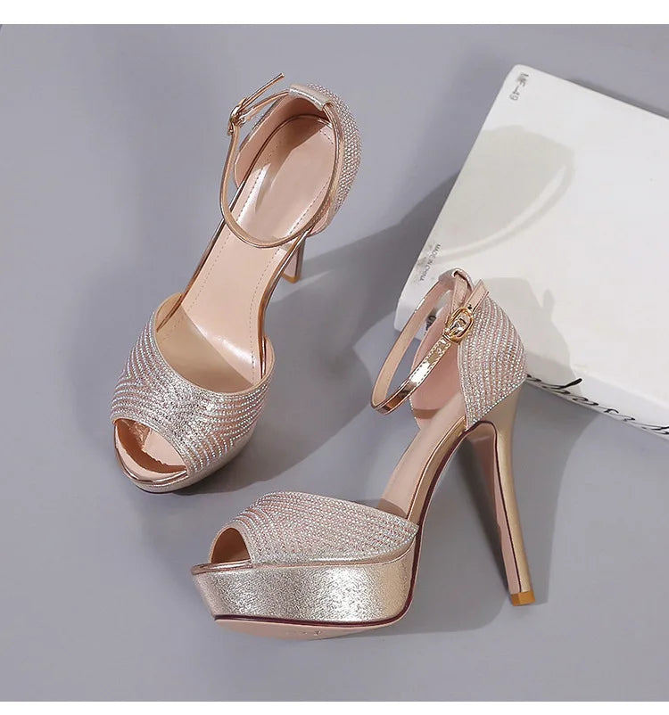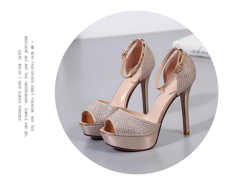 Bling Sandals Women Shoes 2021 Gladiator High Heels 12CM Platform Sandals Pumps Peep Toe Ladies Shoes Party Bridal Wedding Shoes