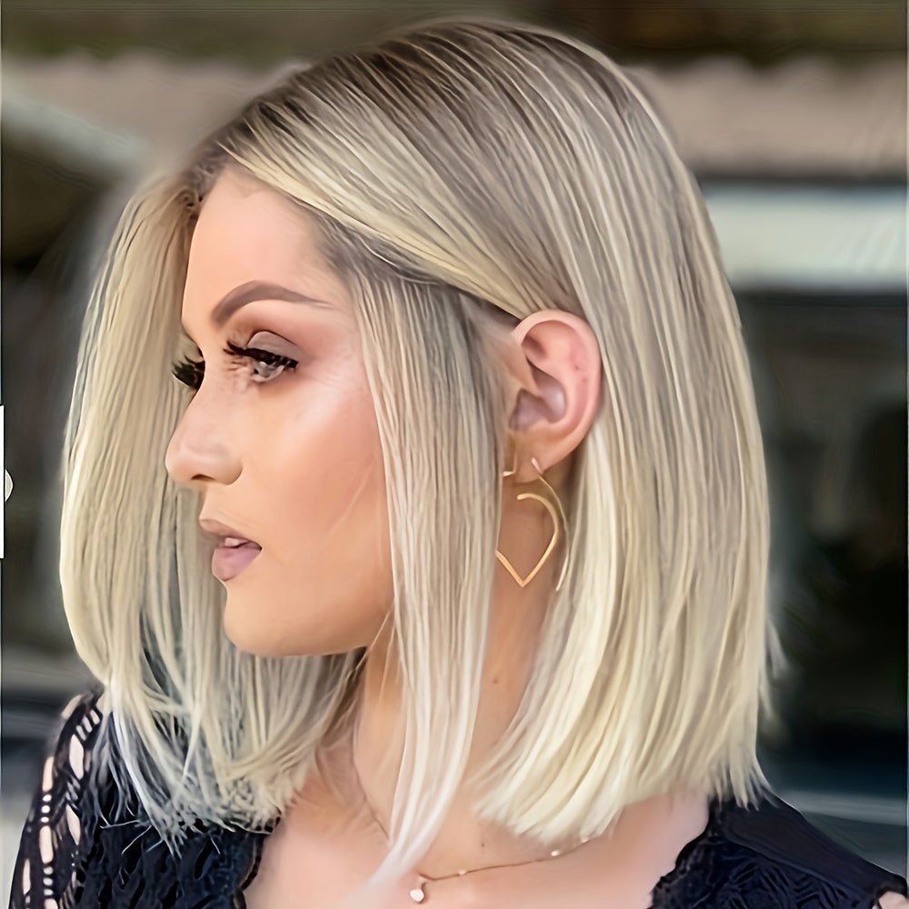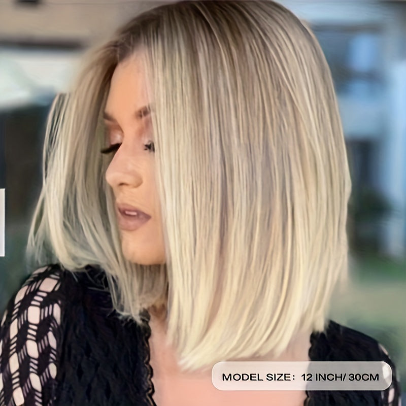 Bob Wig For Women Short Straight Synthetic Hair With Blonde Highlights Middle Part
