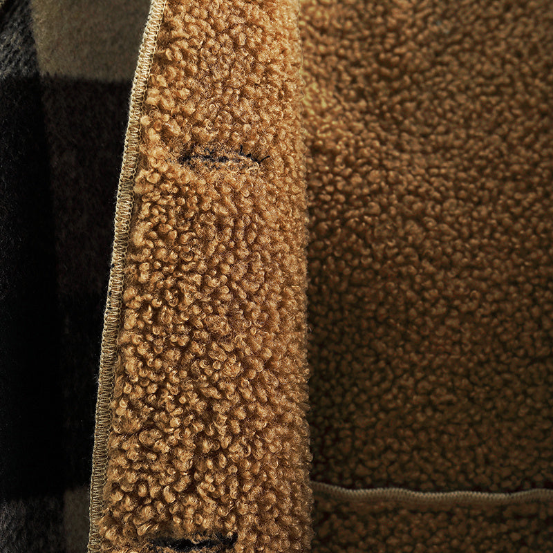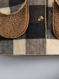 Boys' Cozy Fleece-Lined Plaid Jacket with Button Front, Pockets & Hood - Long Sleeve Casual Winter Coat for Fall/Winter, Brown & Black Checkered Pattern, Cozy Outerwear, Durable Outerwear