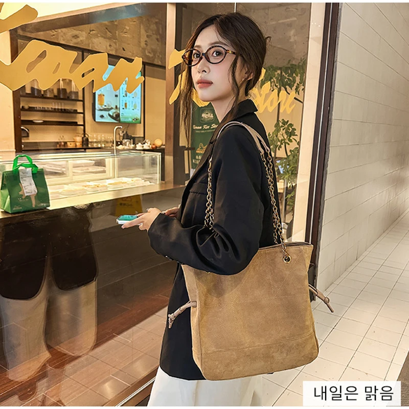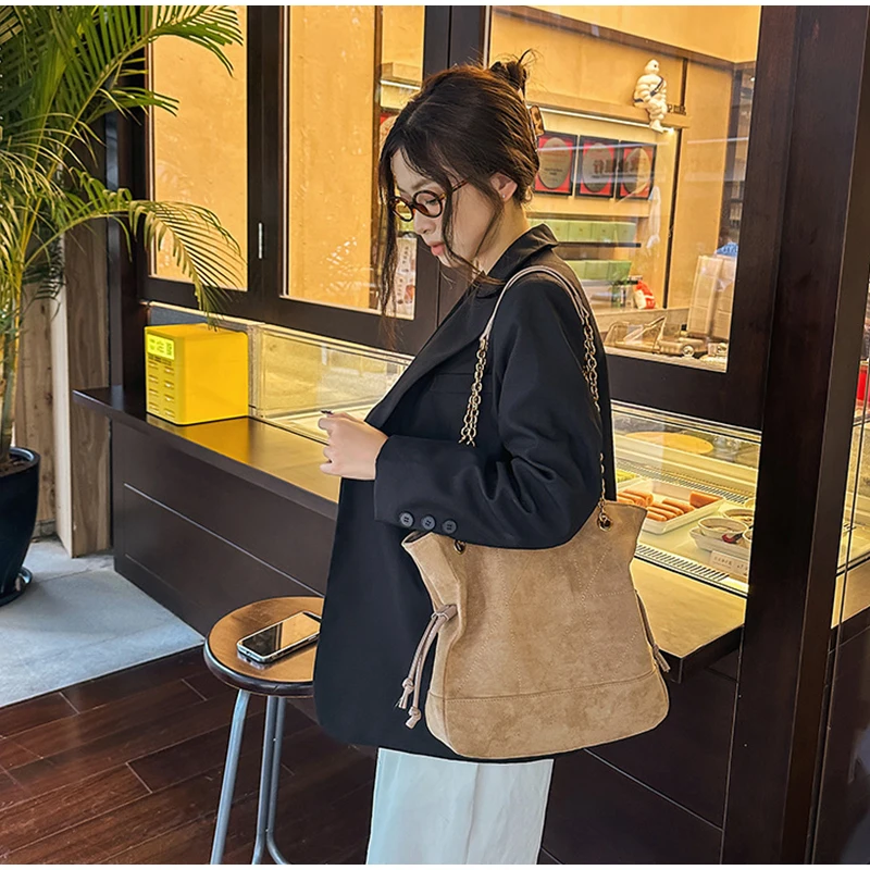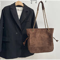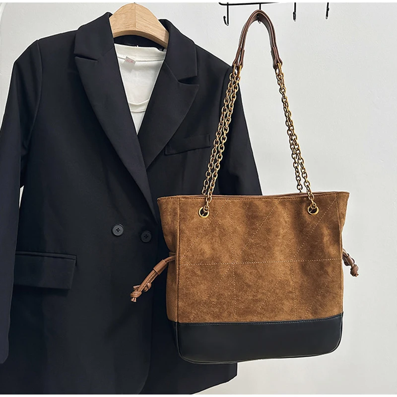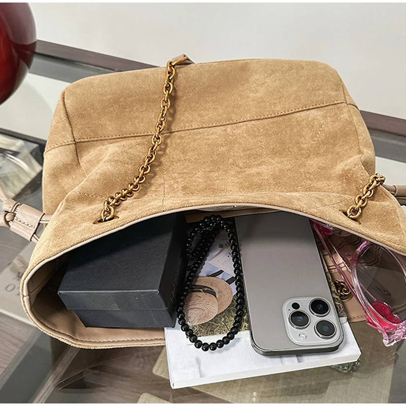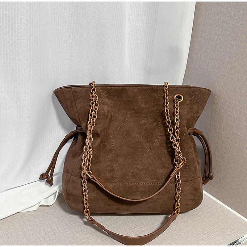 2025 Early Fall Retro Luxe Suede Diamond-Quartz Chain Bag – Large-Capacity Drawstring Lucky Bag