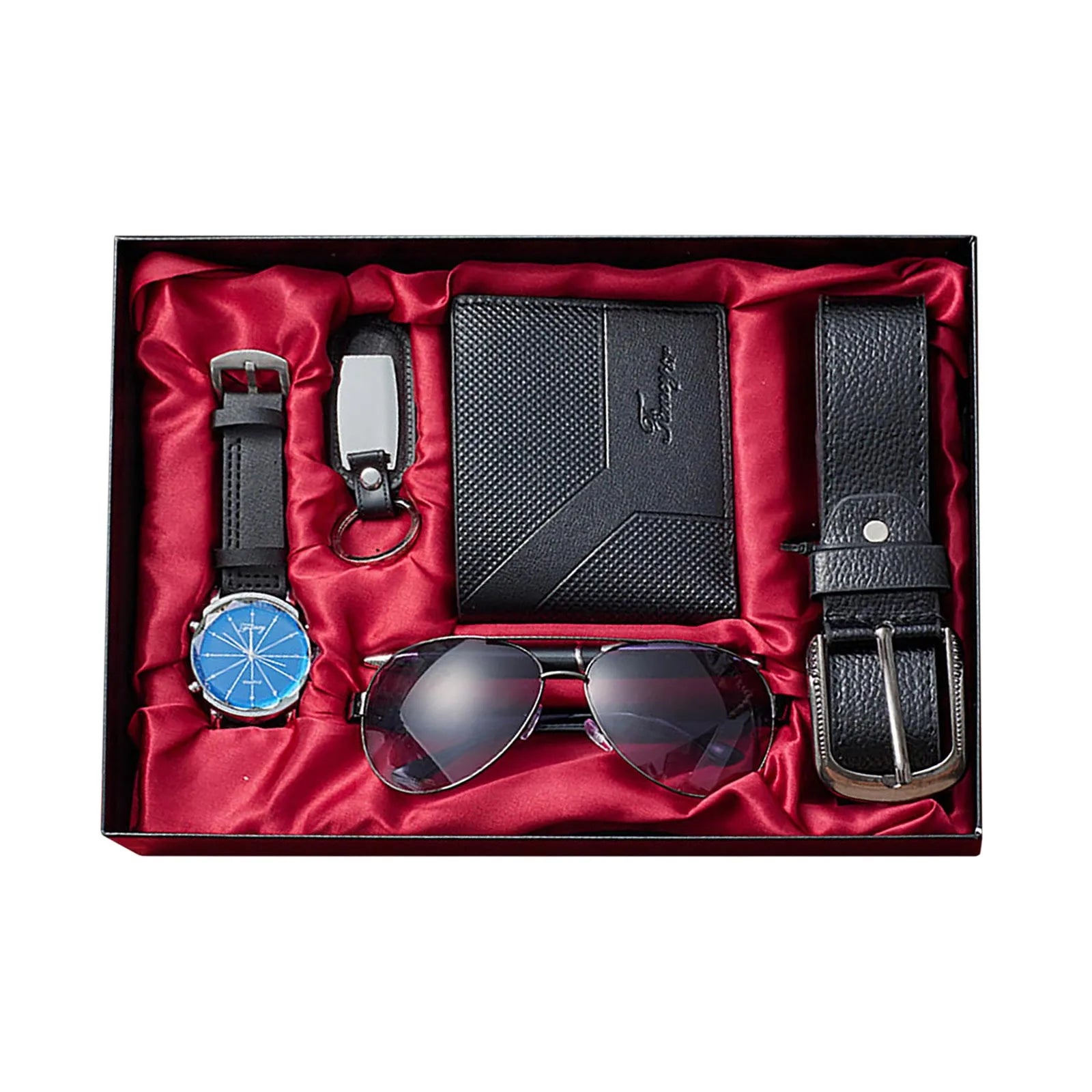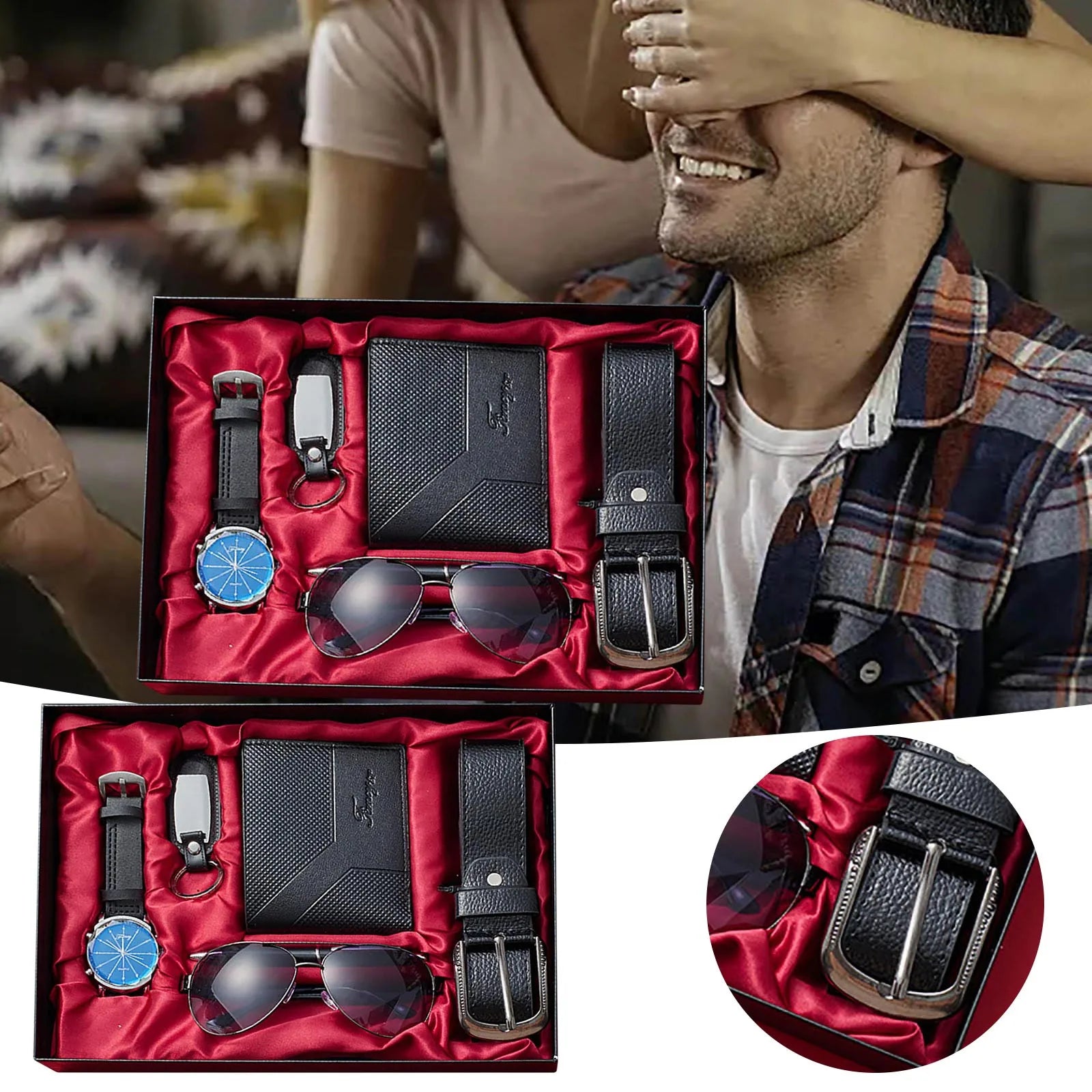 Gift Set Men's Quality Leather Quartz Wrist Skin With Key Ring Sunglasses Wallet Pen Valentine's Day Father's Day Christmas Birthday Gift For Him Luxury Gift For Husband 2ml