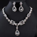 Bridal Jewelry Set Wholesale Silver Plated Red Green Blue Crystal Rhinestone Drop Earrings and Luxury Wedding Necklace for Women