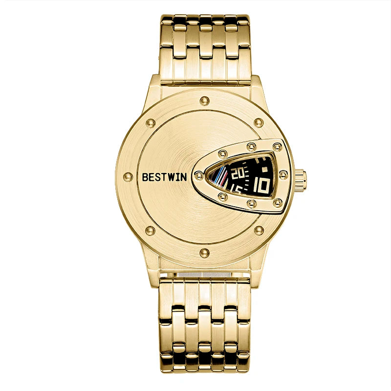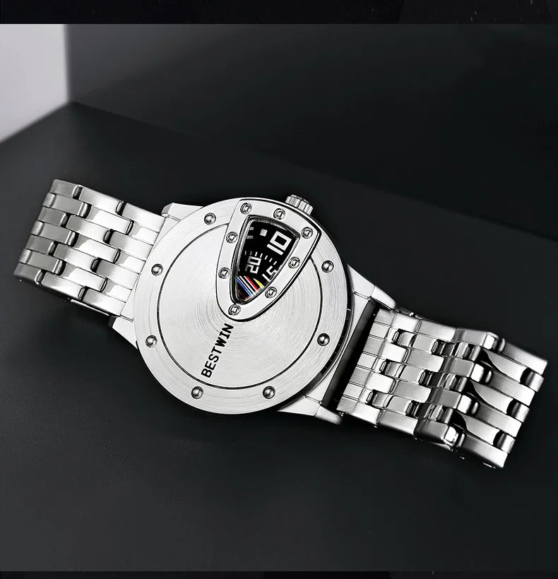 BSETWIN 739 brand men watch creative semi-closed dial digital scale time stainless steel strap 30M waterproof fashion men watch