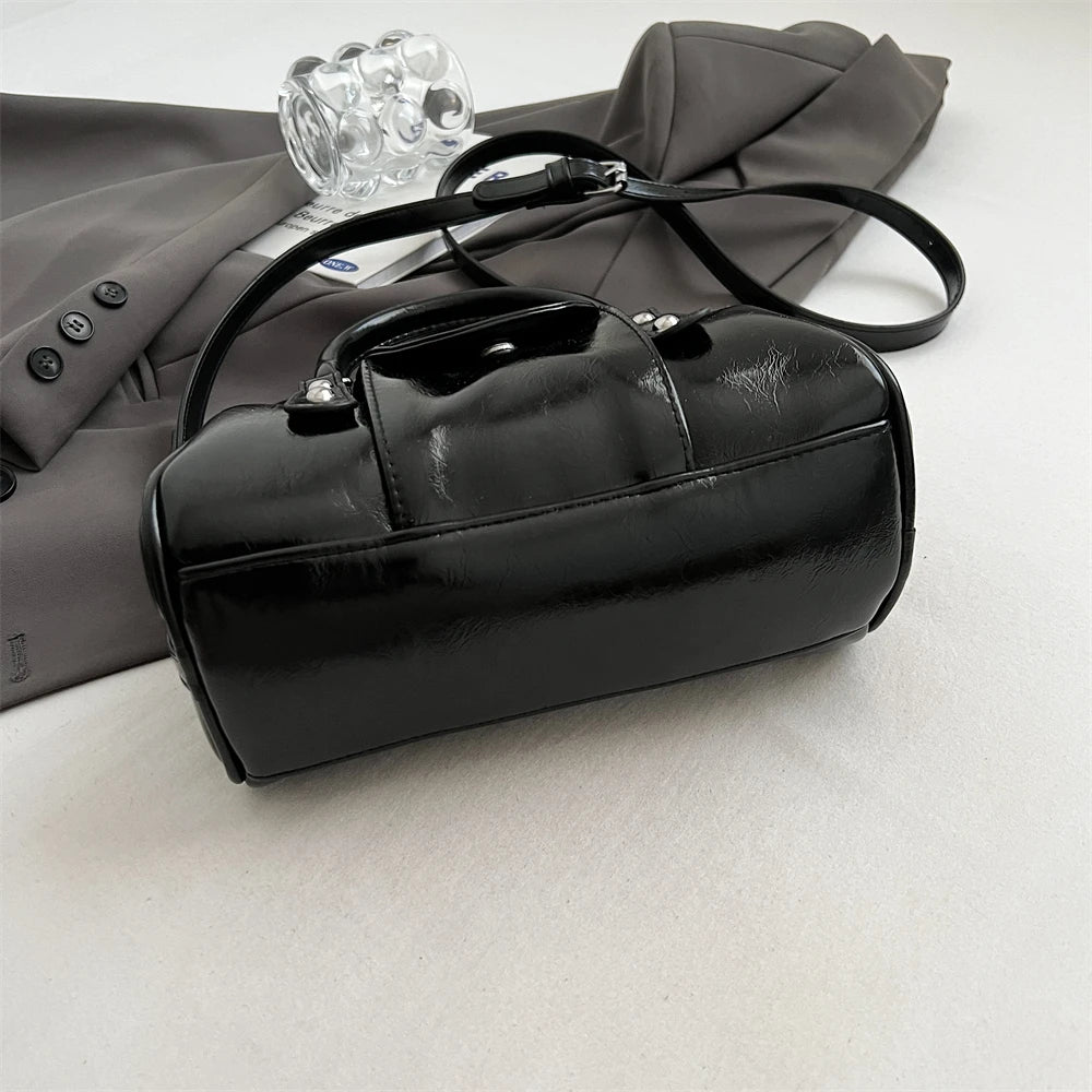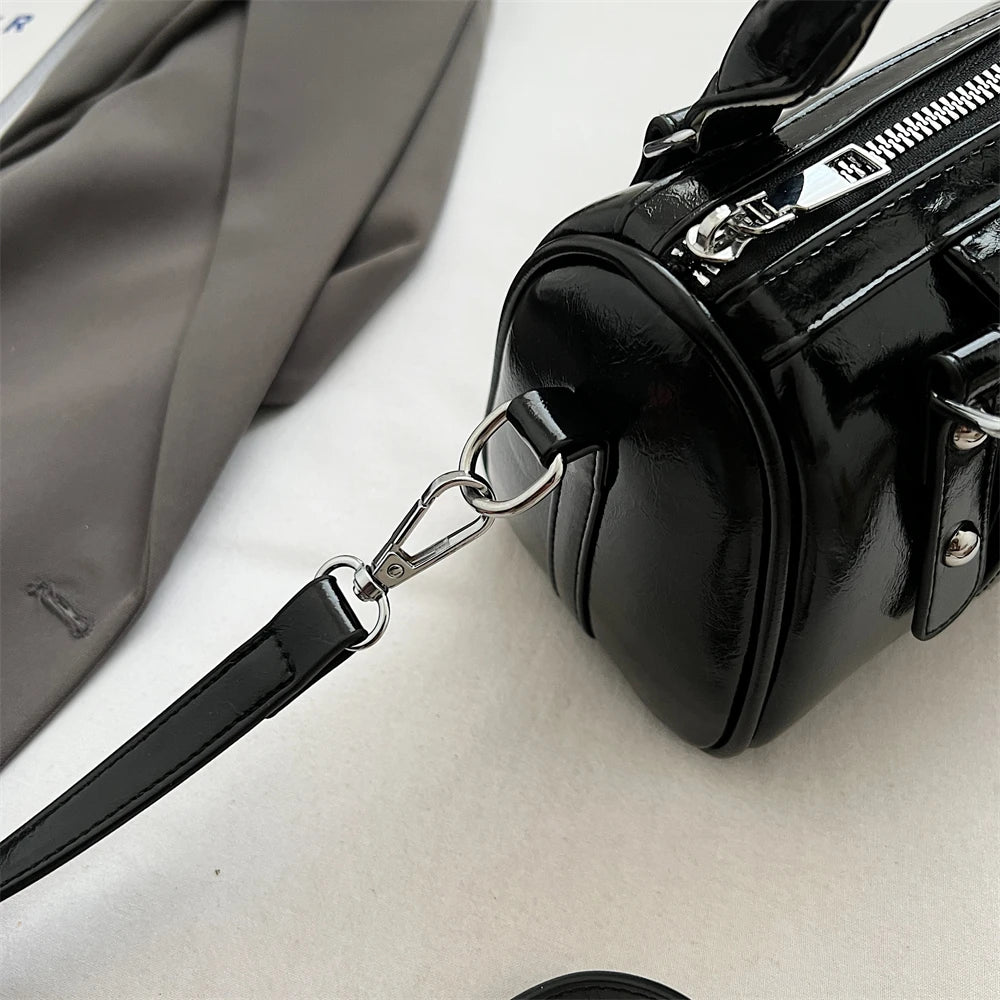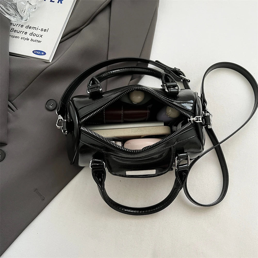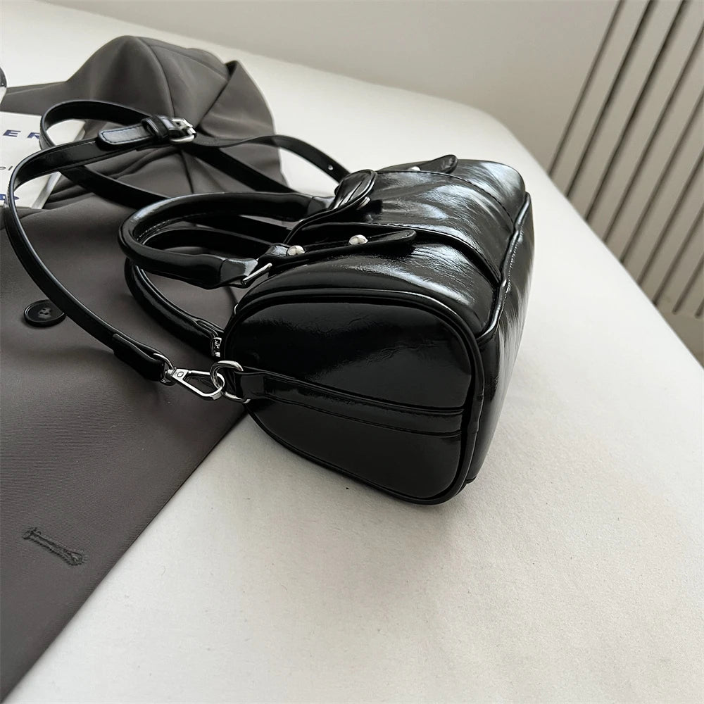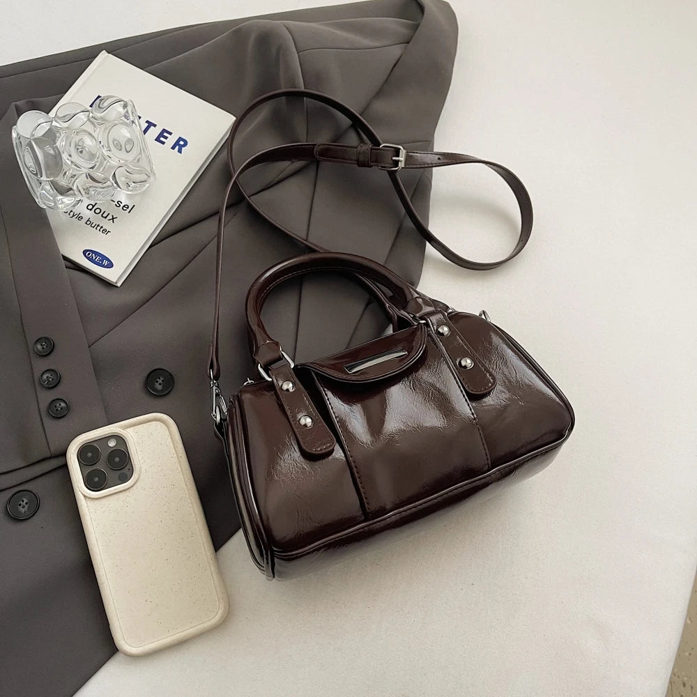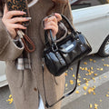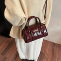 Burgundy Mini Top-handle Bags For Women Bright PU Leather Pure Color Shoulder Crossbody Bags 2024 Latest Luxury Designer Handbag