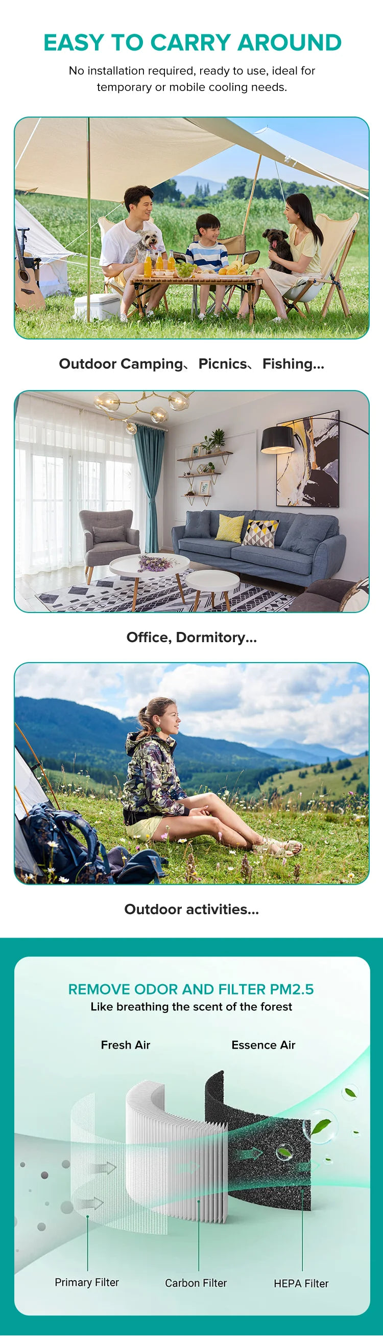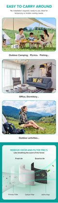 Camping Air ConditionerPortable Camping Mobile Outdoor Air Conditioner Without Outdoor Unit No Installation, No Drainage, Easy T