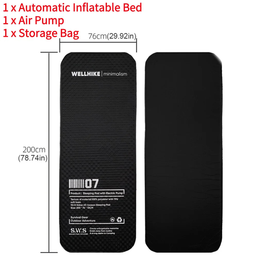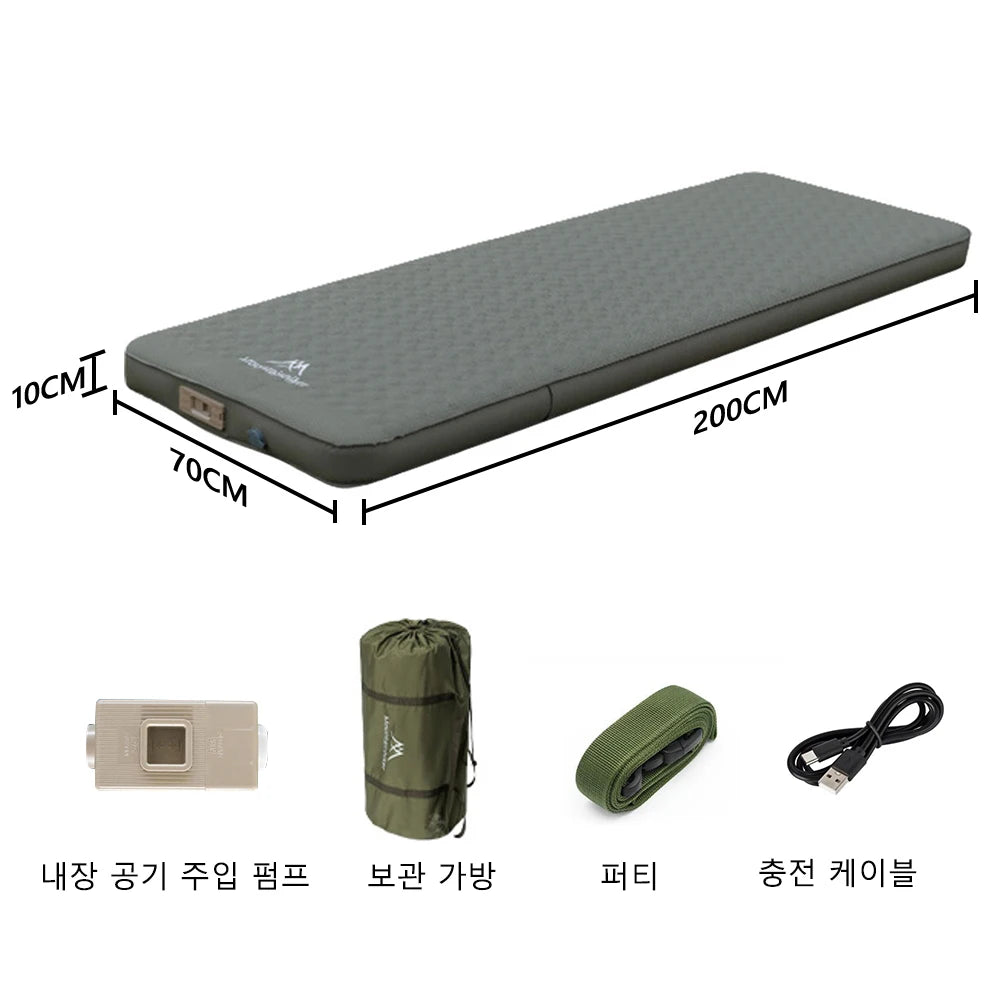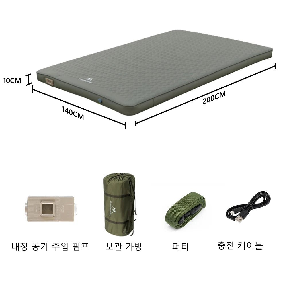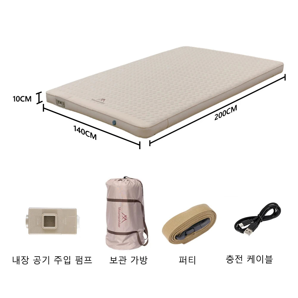 Features: 1.Built-in Air Pump: The camping air mattress comes with a built-in dual-use air pump for inflating and deflating, eliminating the need for an extra pump. Easily get it ready to use upon arrival without additional purchases. 2.Comfortable High-Elastic Sponge: Filled with high-elasticity sponge, the self-inflating sleeping pad provides exceptional softness. The 30D skin-friendly stretch fabric ensures a delicate and soft touch. 3.Quick 40-second Storage: With its efficient pump-assisted deflation, the outdoor tent inflatable bed takes only 40 seconds to store, significantly reducing storage volume by 50% compared to regular air mattresses. 4.Thick 10cm Mattress: Featuring a 10cm thick mattress, this lightweight air cushion offers great comfort and support. The egg-crate texture design enhances the comfort level during sleep. 5.High R-Value Insulation: Boasting an R-value of 4.0, the portable inflatable mat retains heat and resists moisture. Densely packed filling material effectively keeps the cold at bay. Specification: Origin: Mainland China Fabric: 30D Elastic Fabric Filling: 16D Stretch Sponge Base Material: 75D Polyester Pongee Weight: Single Person: About 1900g, Double Person: About 3700g Single Person Size: 200cm*70cm*10cm/78.74in*27.56in*3.94in After Inflation, 65cm*26cm*24cm/25.59in*10.24in*9.45in For Storage Double Person Size: 200cm*140cm*10cm/78.74in*55.12in*3.94in After Inflation, 65cm*39cm*25cm/25.59in*15.35in*9.84in For Storage Color: Beige, Green Built-In Air Pump Parameters: Material: ABS Battery: 1200mAh/7.4V Battery Life: 18 Minutes Charging: 3H Input: Type-C Power: 35W Air Volume: 180min± Inflation Pressure: About 4.8Kpa± Air Pump Weight: About 250g Features: Soft and Comfortable, Fast Inflation, Fast Storage, Breathable and Cold-Proof, Egg-Nest Design, High Elastic Sponge, Lightweight and Portable Note: